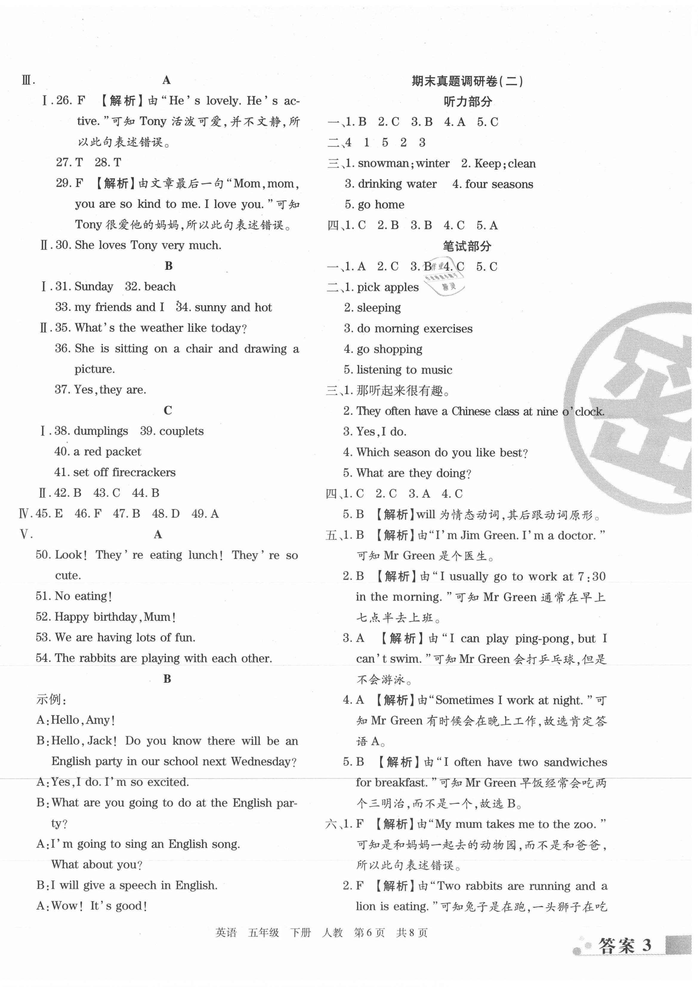 注:目前有些书本章节名称可能整理的还不是很完善,但都是按照顺序排列的,请同学们按照顺序仔细查找。练习册 2021年期末考试必刷卷五年级英语下册人教PEP版 答案主要是用来给同学们做完题方便对答案用的,请勿直接抄袭。