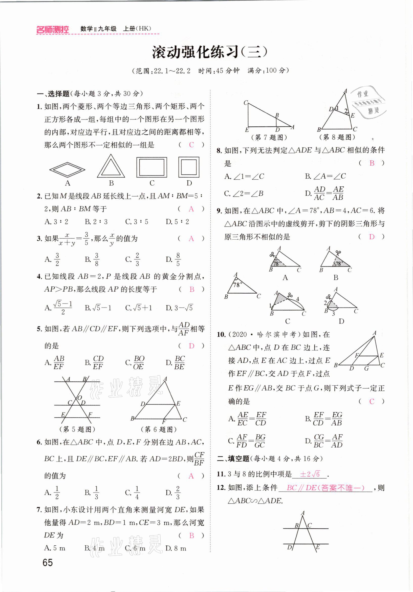 注:目前有些书本章节名称可能整理的还不是很完善,但都是按照顺序排列的,请同学们按照顺序仔细查找。练习册 2021年名师测控九年级数学上册沪科版安徽专版 答案主要是用来给同学们做完题方便对答案用的,请勿直接抄袭。