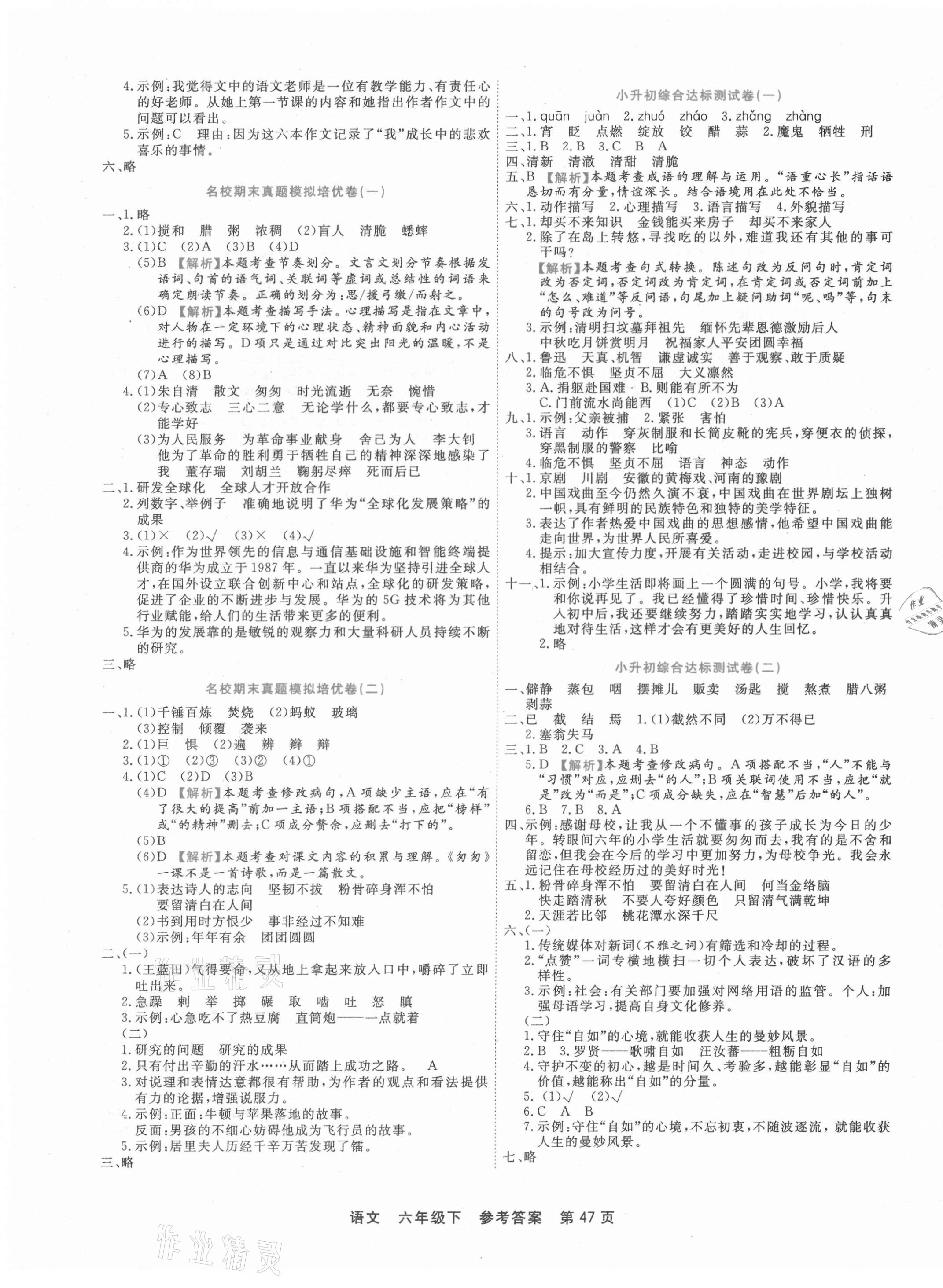 注:目前有些书本章节名称可能整理的还不是很完善,但都是按照顺序排列的,请同学们按照顺序仔细查找。练习册 2021年期末小状元六年级语文下册人教版 答案主要是用来给同学们做完题方便对答案用的,请勿直接抄袭。