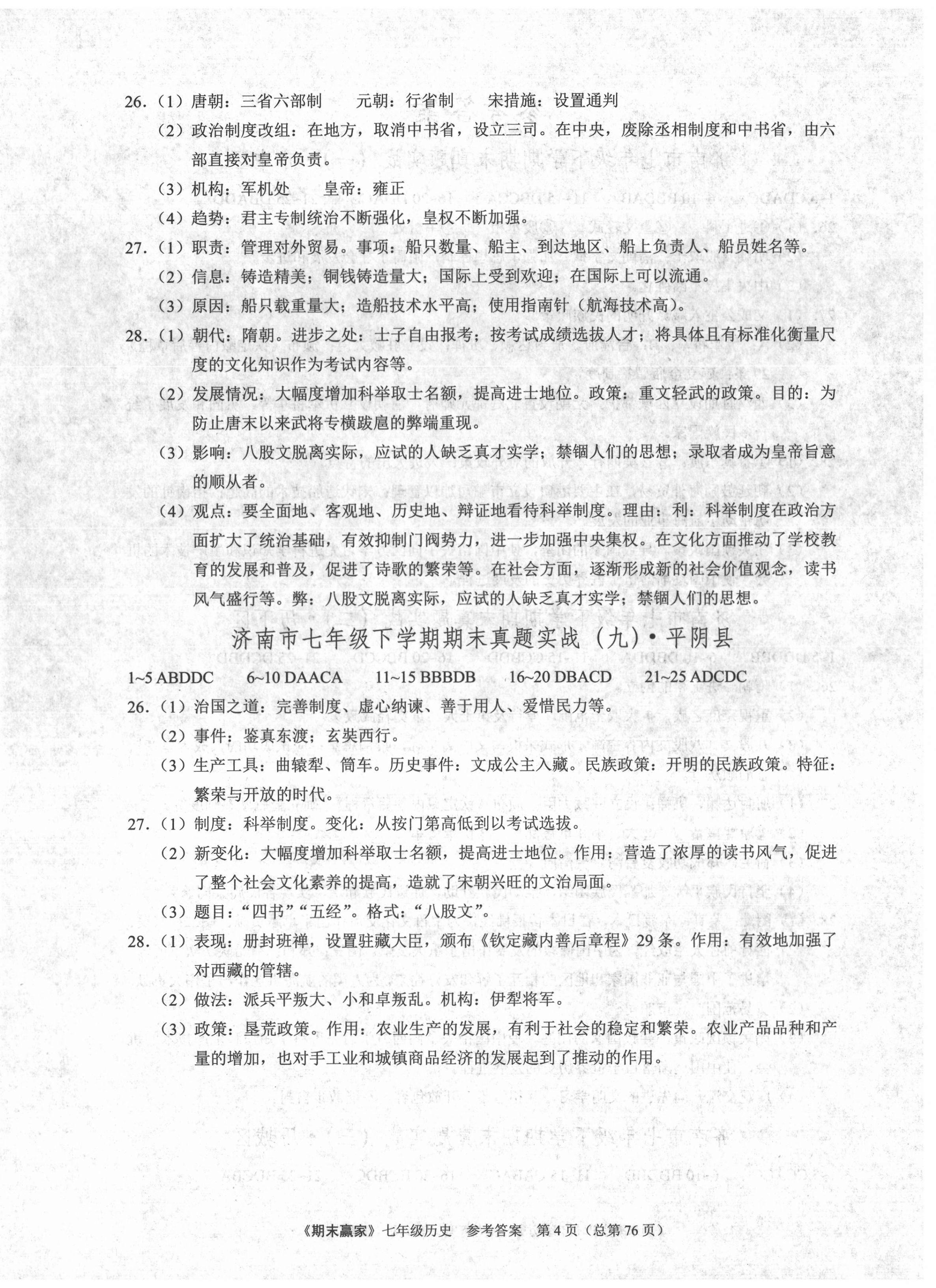 注:目前有些书本章节名称可能整理的还不是很完善,但都是按照顺序排列的,请同学们按照顺序仔细查找。练习册 2021年期末赢家七年级历史下册人教版济南专用 答案主要是用来给同学们做完题方便对答案用的,请勿直接抄袭。