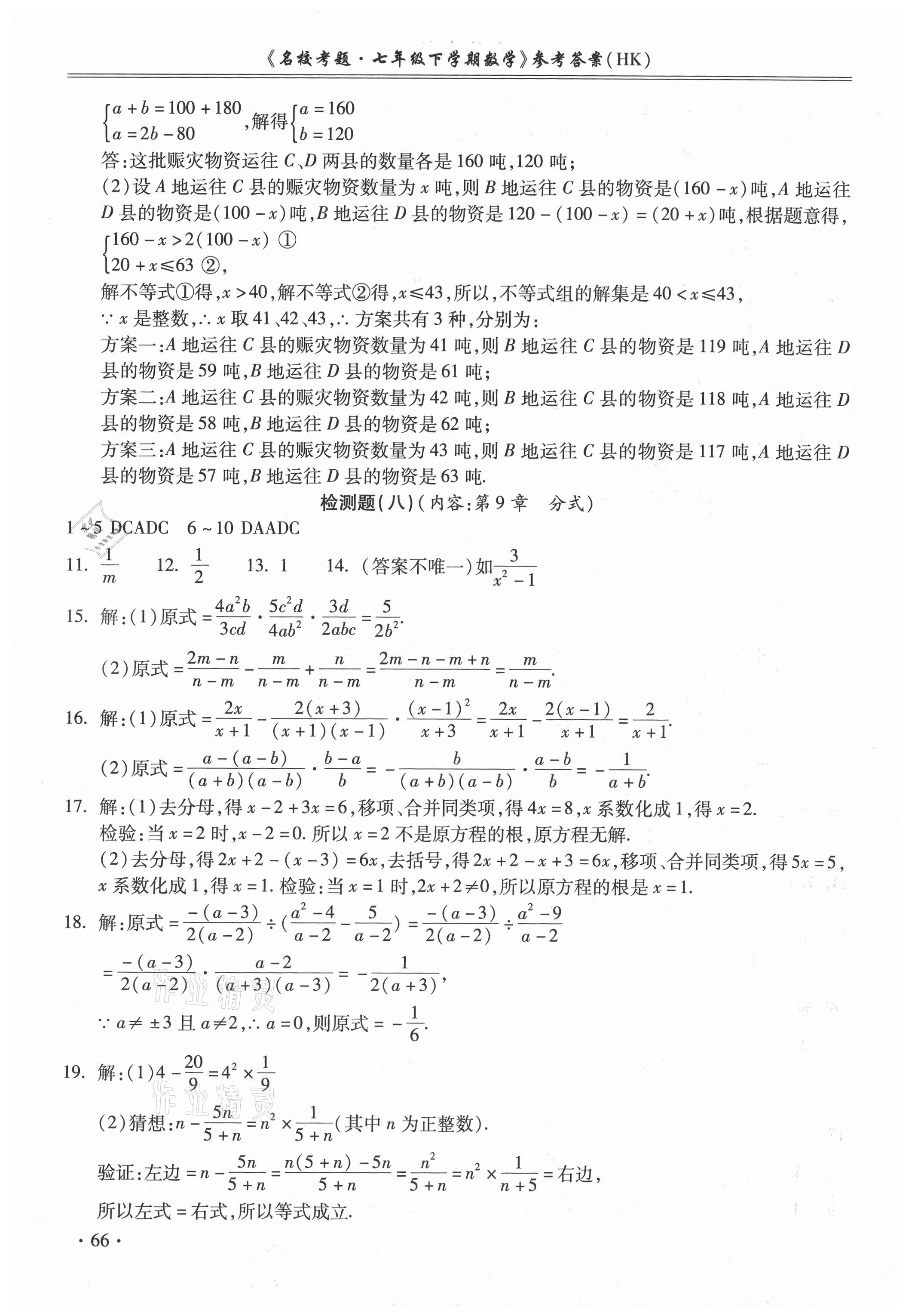 注:目前有些书本章节名称可能整理的还不是很完善,但都是按照顺序排列的,请同学们按照顺序仔细查找。练习册 2021年名校考题七年级数学下册沪科版 答案主要是用来给同学们做完题方便对答案用的,请勿直接抄袭。