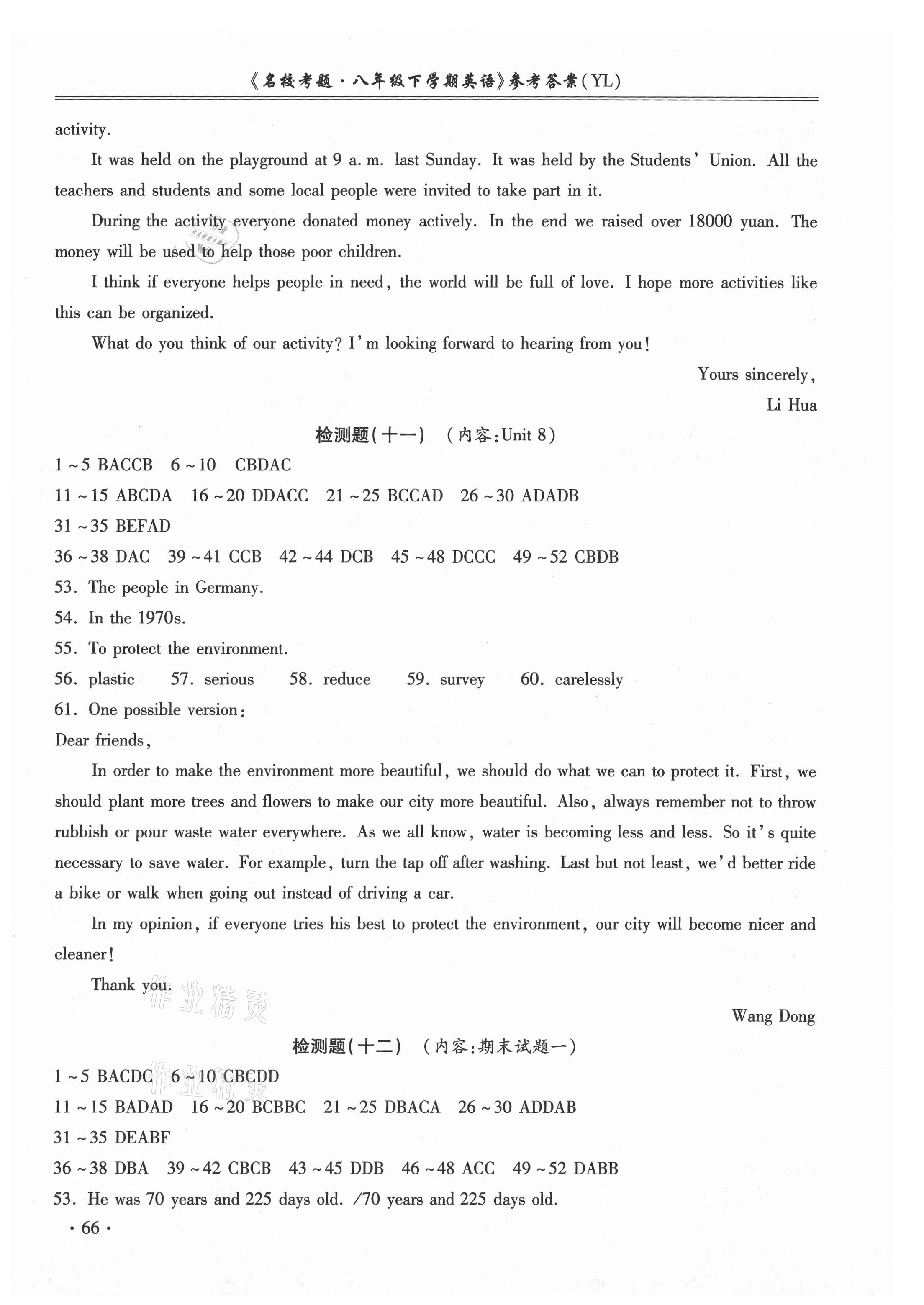 注:目前有些书本章节名称可能整理的还不是很完善,但都是按照顺序排列的,请同学们按照顺序仔细查找。练习册 2021年名校考题八年级英语下册译林版 答案主要是用来给同学们做完题方便对答案用的,请勿直接抄袭。