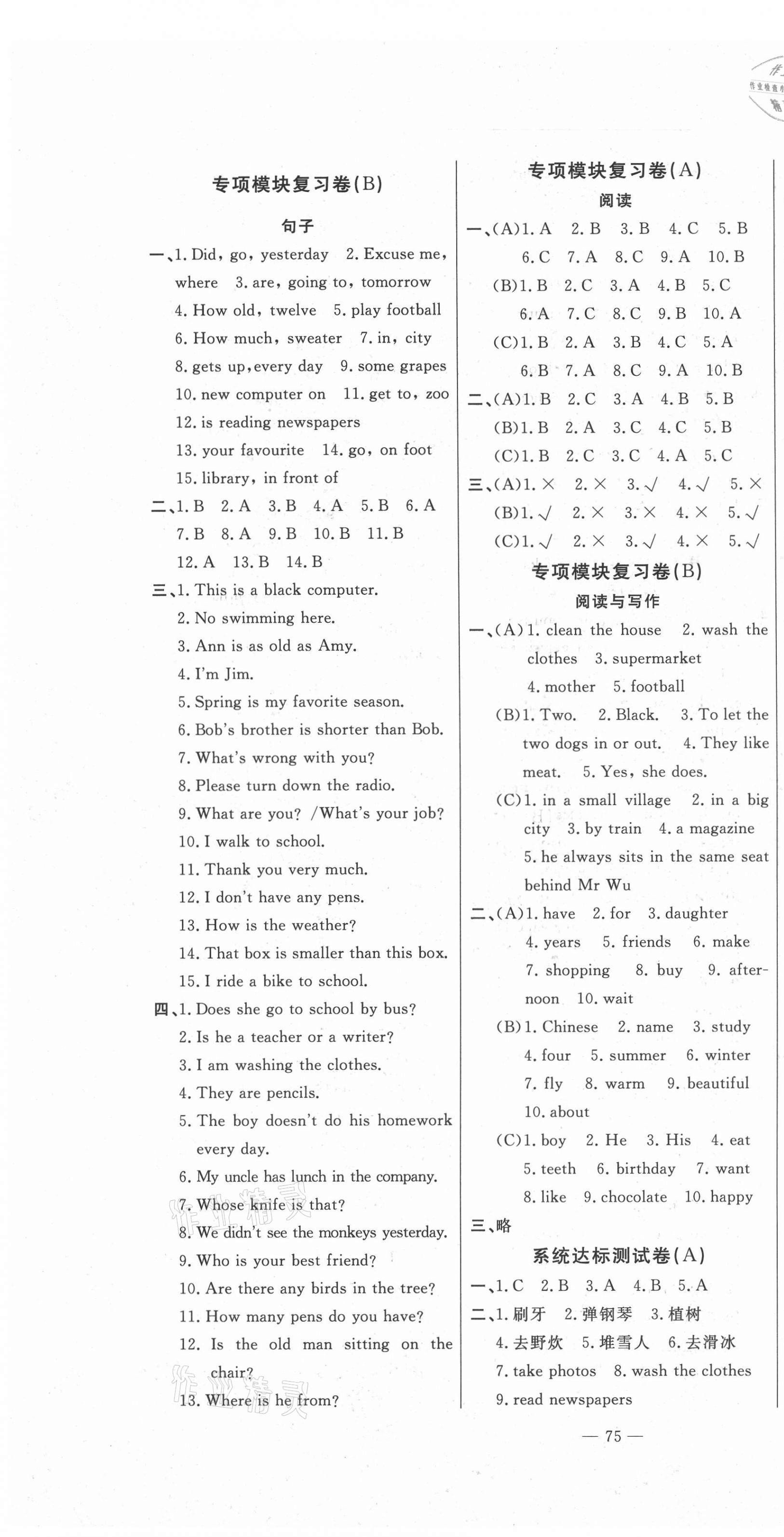 注:目前有些书本章节名称可能整理的还不是很完善,但都是按照顺序排列的,请同学们按照顺序仔细查找。练习册 2021年小考状元必备测试卷英语人教版 答案主要是用来给同学们做完题方便对答案用的,请勿直接抄袭。