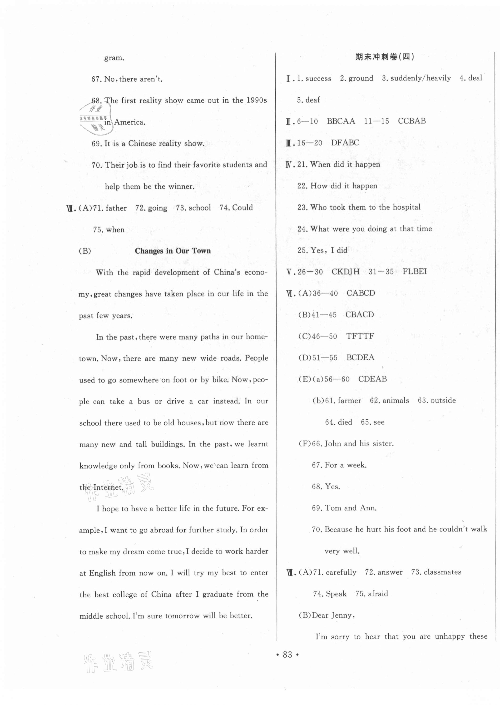 注:目前有些书本章节名称可能整理的还不是很完善,但都是按照顺序排列的,请同学们按照顺序仔细查找。练习册 2021年名校调研期末冲刺八年级英语下册人教版 答案主要是用来给同学们做完题方便对答案用的,请勿直接抄袭。