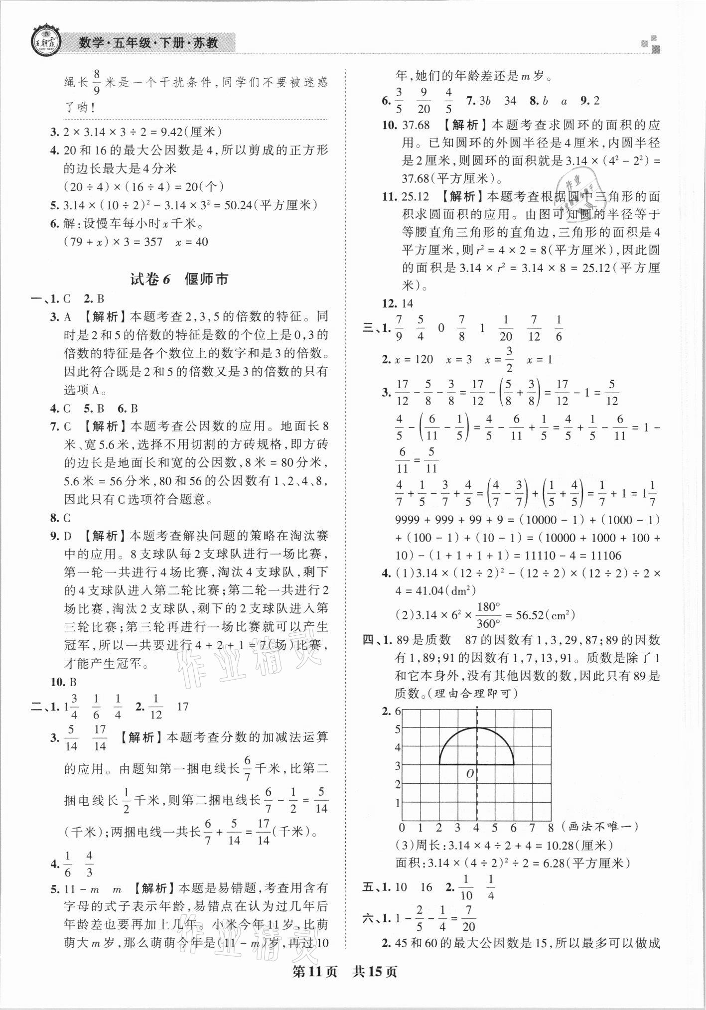 注:目前有些书本章节名称可能整理的还不是很完善,但都是按照顺序排列的,请同学们按照顺序仔细查找。练习册 2021年王朝霞各地期末试卷精选五年级数学下册苏教版洛阳专版 答案主要是用来给同学们做完题方便对答案用的,请勿直接抄袭。