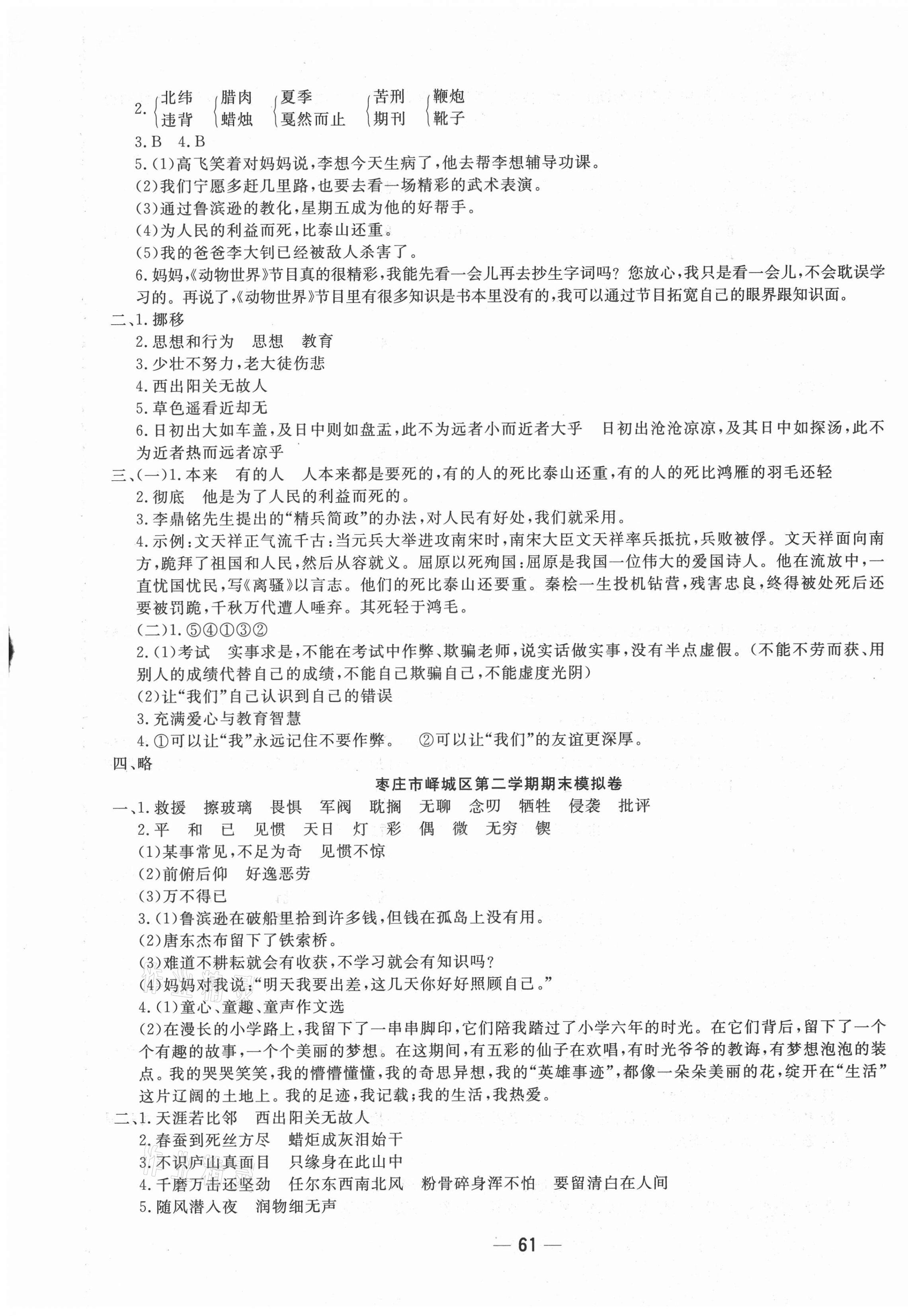 2021年学海金卷期末大赢家六年级语文下册人教版枣庄专版