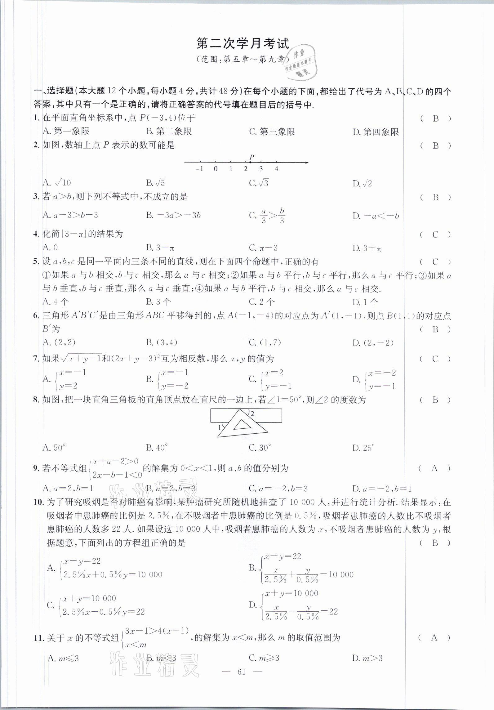 注:目前有些书本章节名称可能整理的还不是很完善,但都是按照顺序排列的,请同学们按照顺序仔细查找。练习册 2021年锋芒文化名校金卷七年级数学下册人教版重庆专版 答案主要是用来给同学们做完题方便对答案用的,请勿直接抄袭。