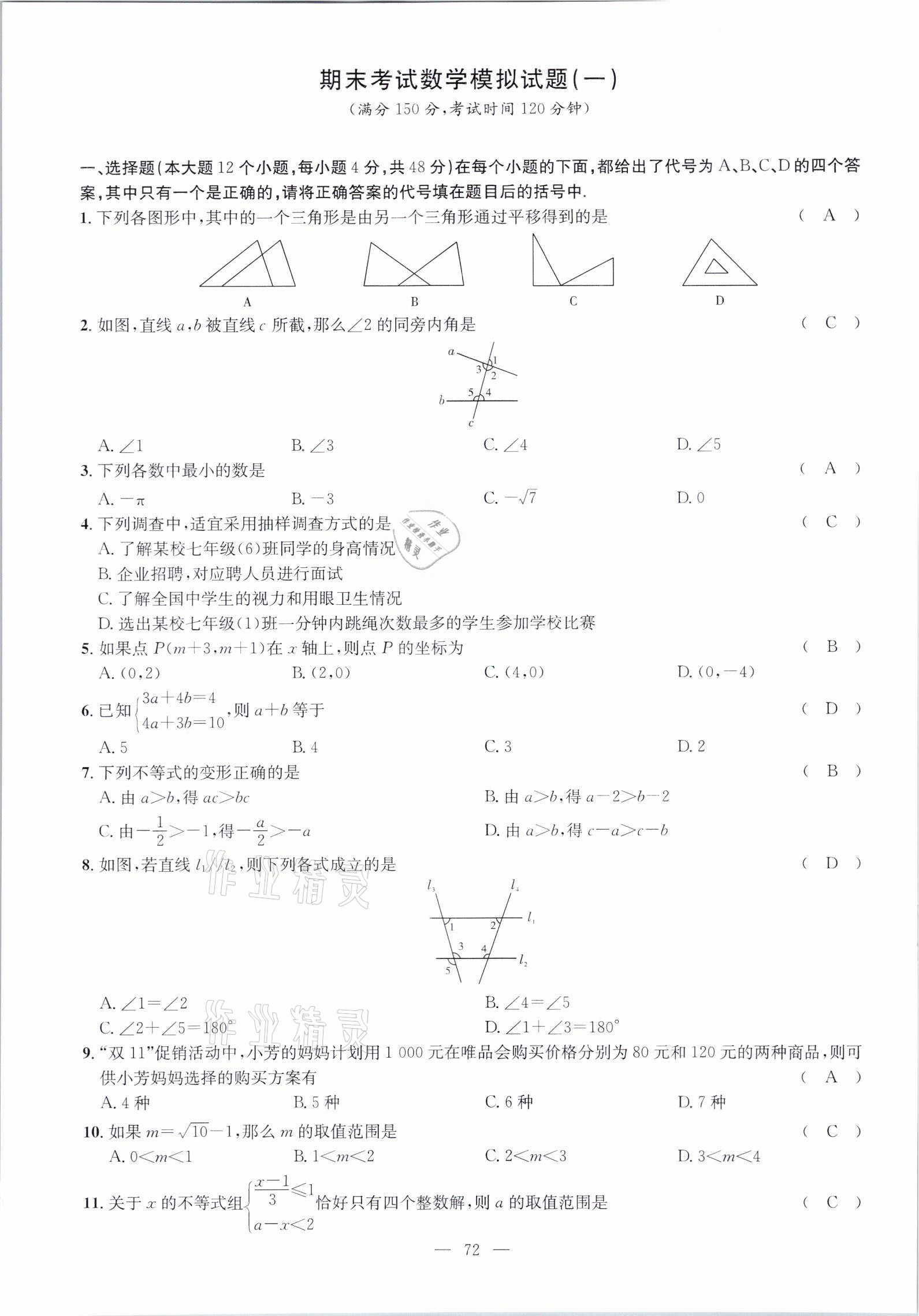 - 参考答案第72页