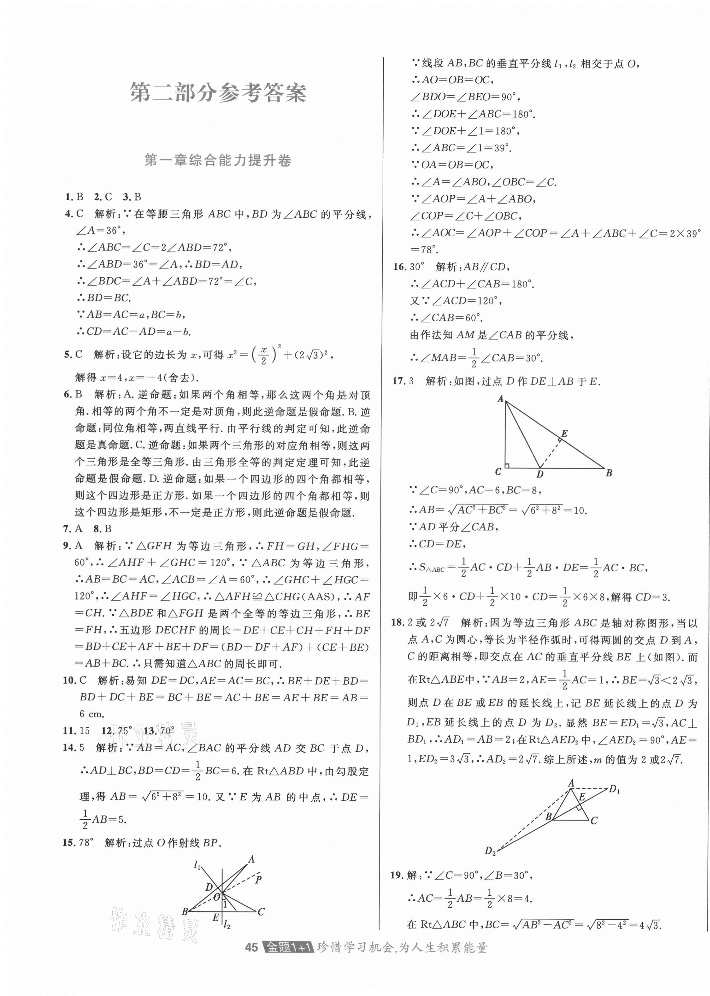 注:目前有些书本章节名称可能整理的还不是很完善,但都是按照顺序排列的,请同学们按照顺序仔细查找。练习册 2021年中大英才金题1加1八年级数学下册北师大版 答案主要是用来给同学们做完题方便对答案用的,请勿直接抄袭。