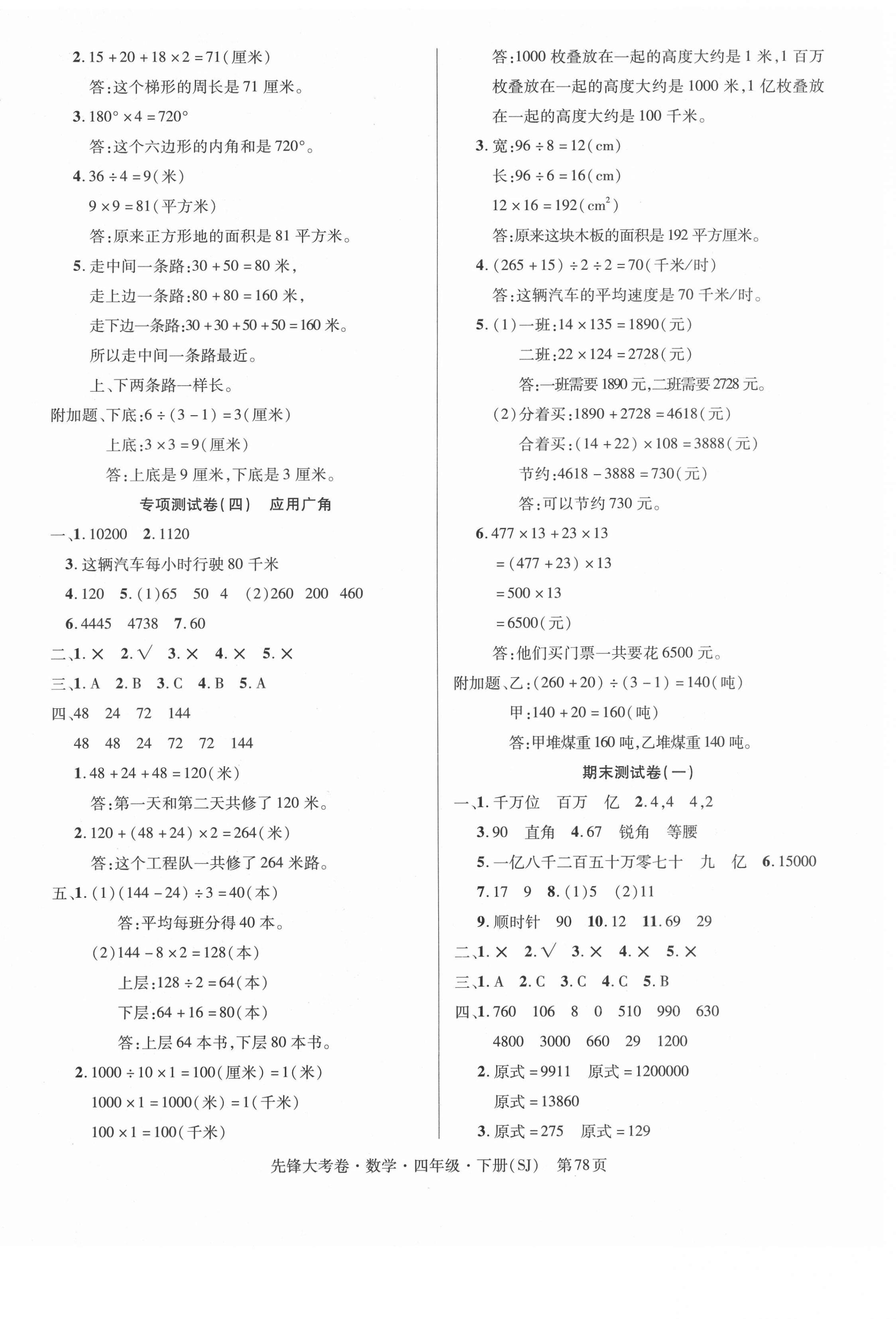注:目前有些书本章节名称可能整理的还不是很完善,但都是按照顺序排列的,请同学们按照顺序仔细查找。练习册 2021年单元加期末复习先锋大考卷四年级数学下册苏教版 答案主要是用来给同学们做完题方便对答案用的,请勿直接抄袭。