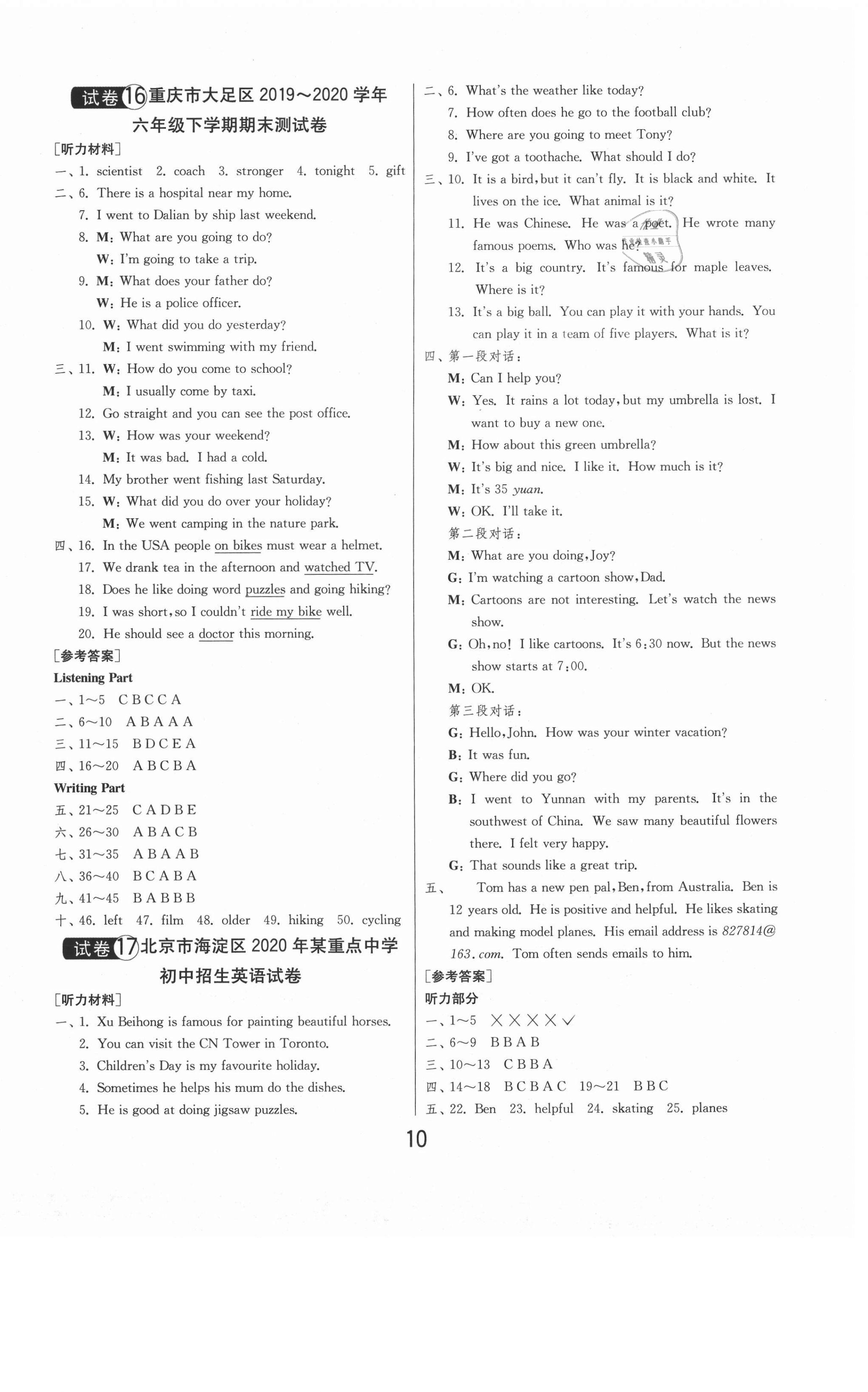 注:目前有些书本章节名称可能整理的还不是很完善,但都是按照顺序排列的,请同学们按照顺序仔细查找。练习册 2021年考必胜全国小学毕业升学考试试卷精选英语 答案主要是用来给同学们做完题方便对答案用的,请勿直接抄袭。