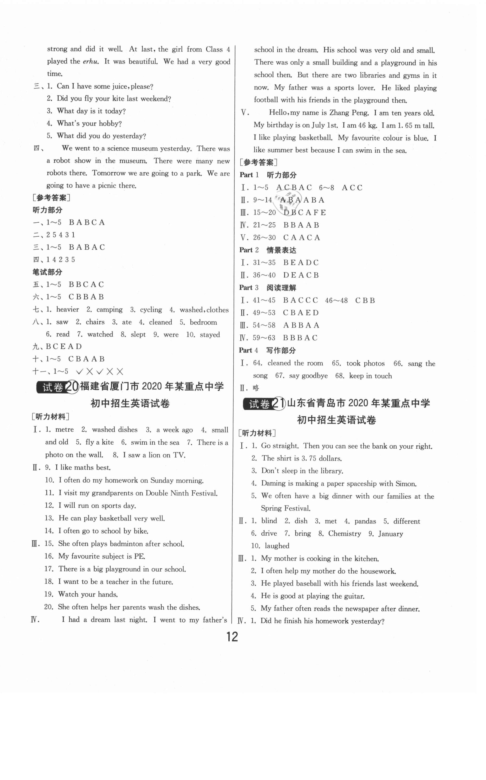 注:目前有些书本章节名称可能整理的还不是很完善,但都是按照顺序排列的,请同学们按照顺序仔细查找。练习册 2021年考必胜全国小学毕业升学考试试卷精选英语 答案主要是用来给同学们做完题方便对答案用的,请勿直接抄袭。