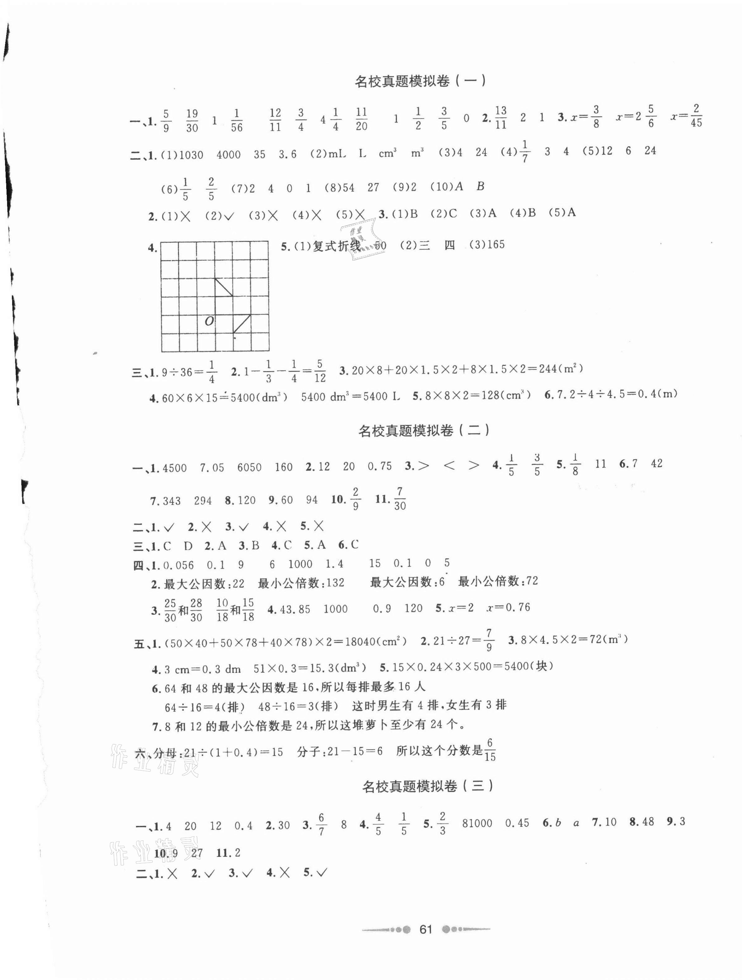 注:目前有些书本章节名称可能整理的还不是很完善,但都是按照顺序排列的,请同学们按照顺序仔细查找。练习册 2021年济宁真题汇编五年级数学下册人教版济宁专版 答案主要是用来给同学们做完题方便对答案用的,请勿直接抄袭。