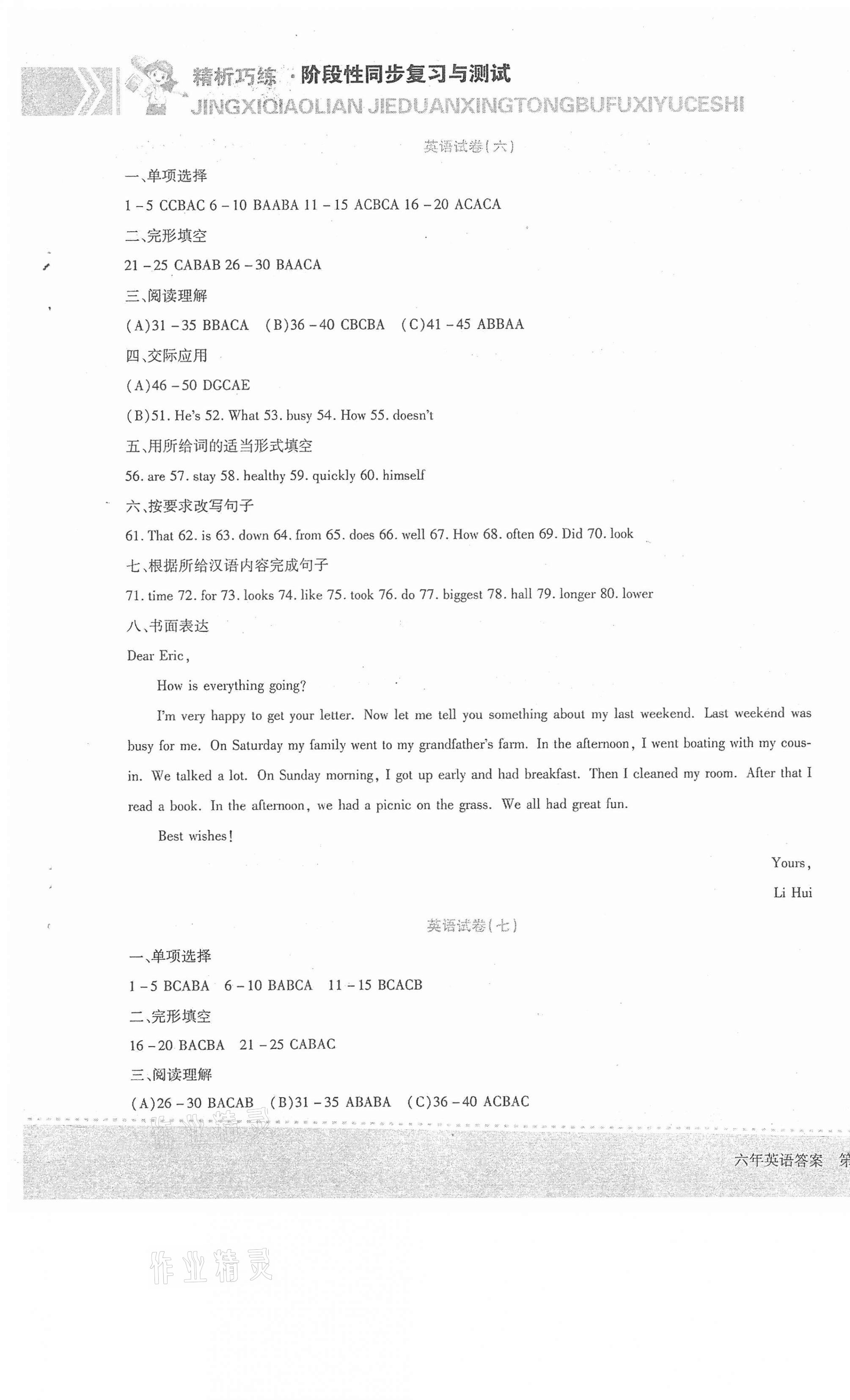 2021年精析巧练阶段性同步复习与测试六年级英语下册人教版五四制B版