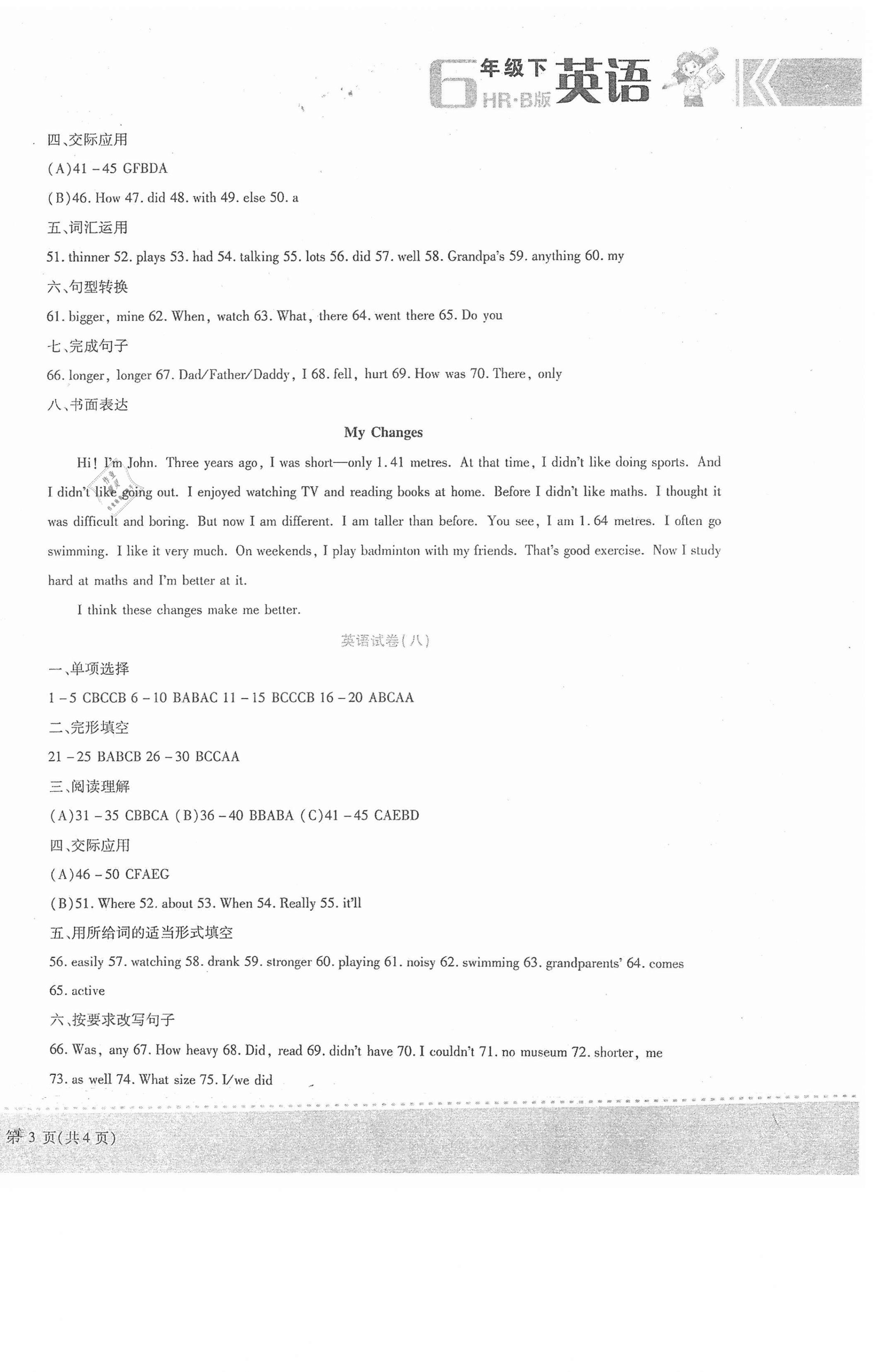 注:目前有些书本章节名称可能整理的还不是很完善,但都是按照顺序排列的,请同学们按照顺序仔细查找。练习册 2021年精析巧练阶段性同步复习与测试六年级英语下册人教版五四制B版 答案主要是用来给同学们做完题方便对答案用的,请勿直接抄袭。