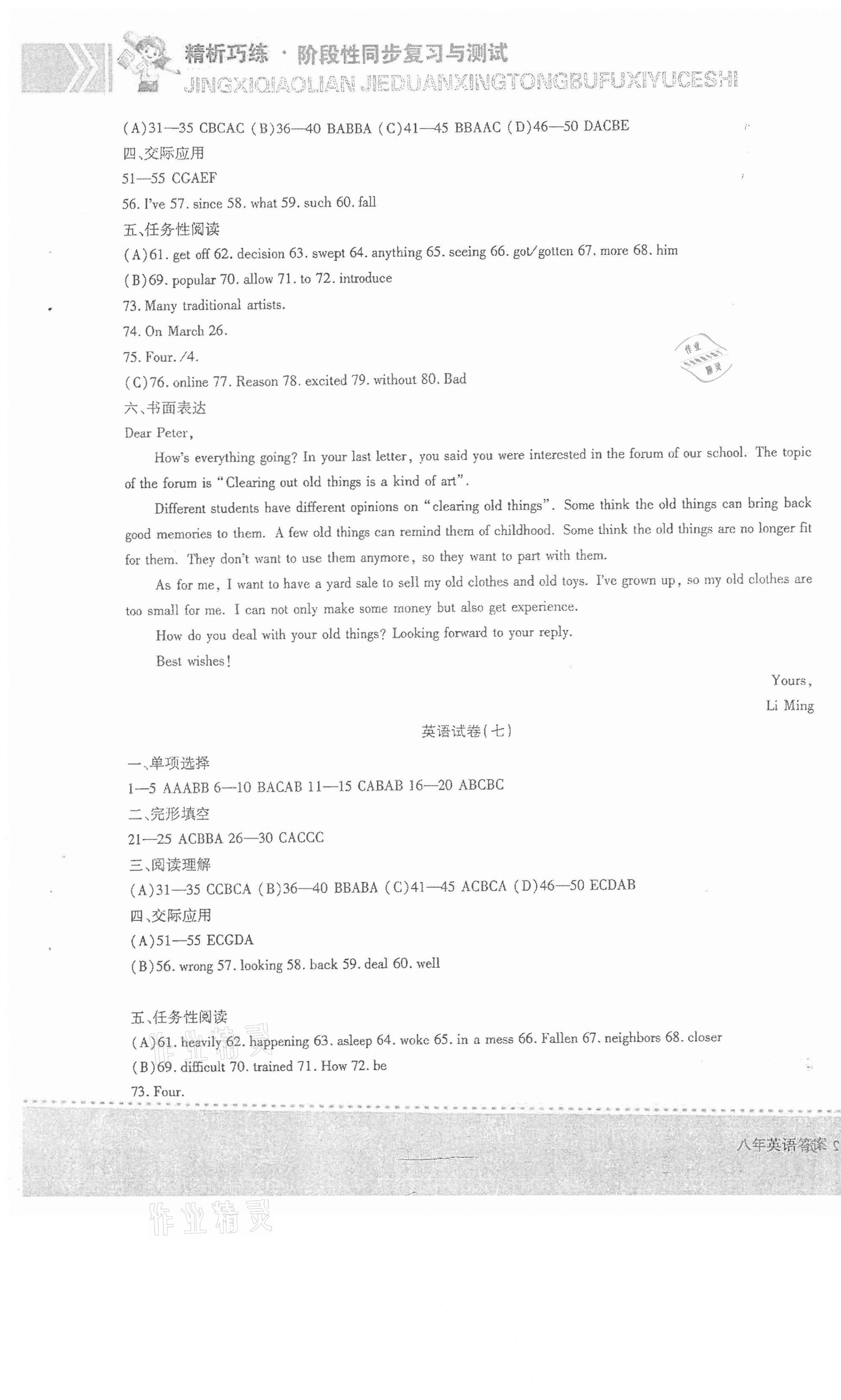 2021年精析巧练阶段性同步复习与测试八年级英语下册人教版五四制B版