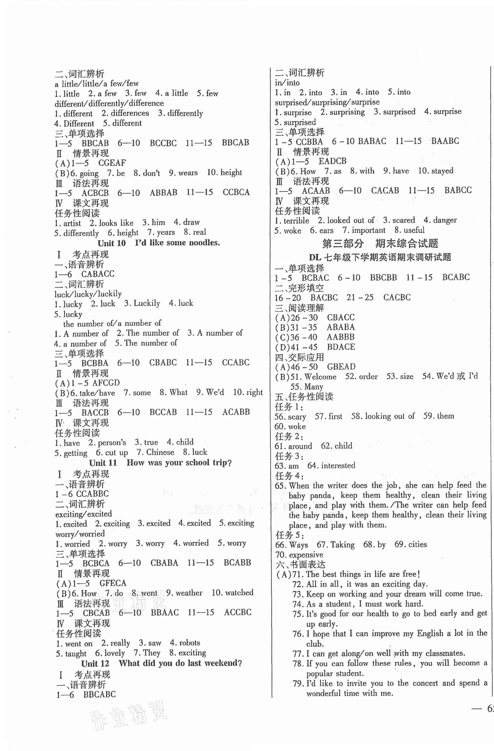 注:目前有些书本章节名称可能整理的还不是很完善,但都是按照顺序排列的,请同学们按照顺序仔细查找。练习册 2021年期末夺分计划七年级英语下册人教版五四制 答案主要是用来给同学们做完题方便对答案用的,请勿直接抄袭。