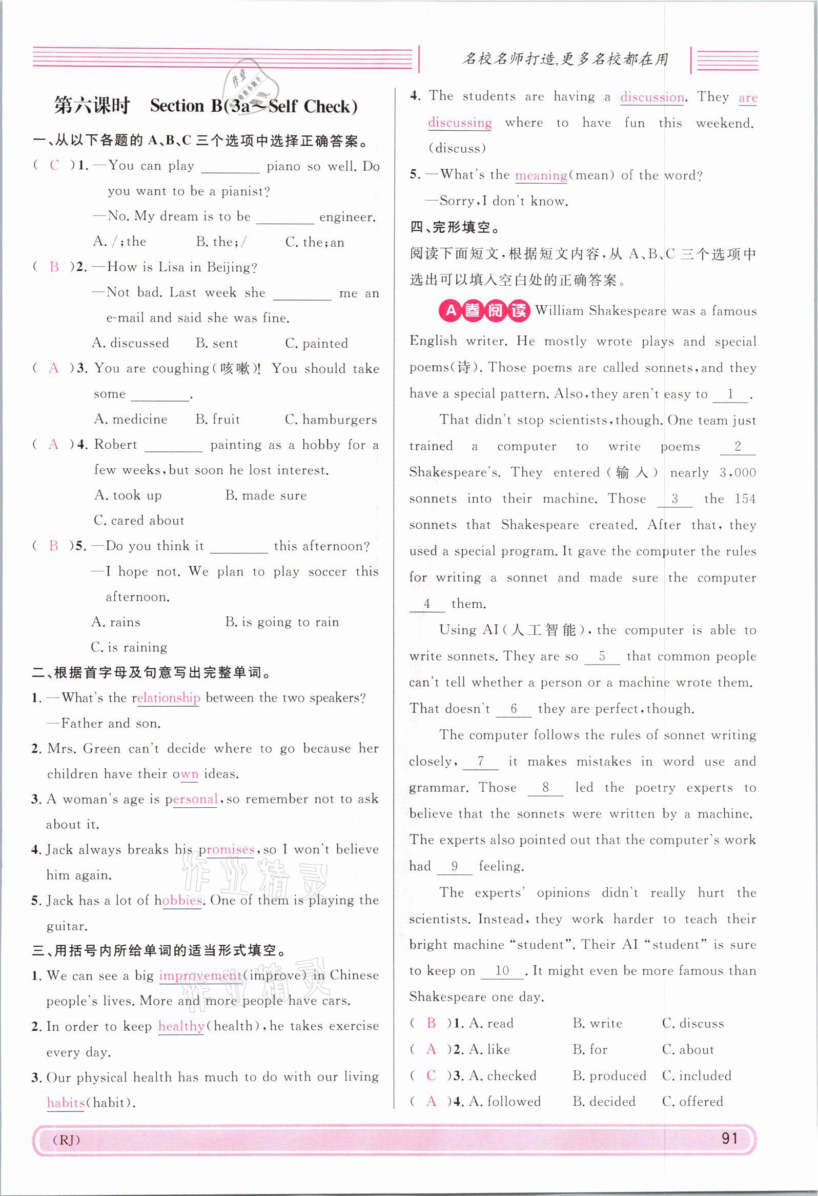 - 参考答案第91页