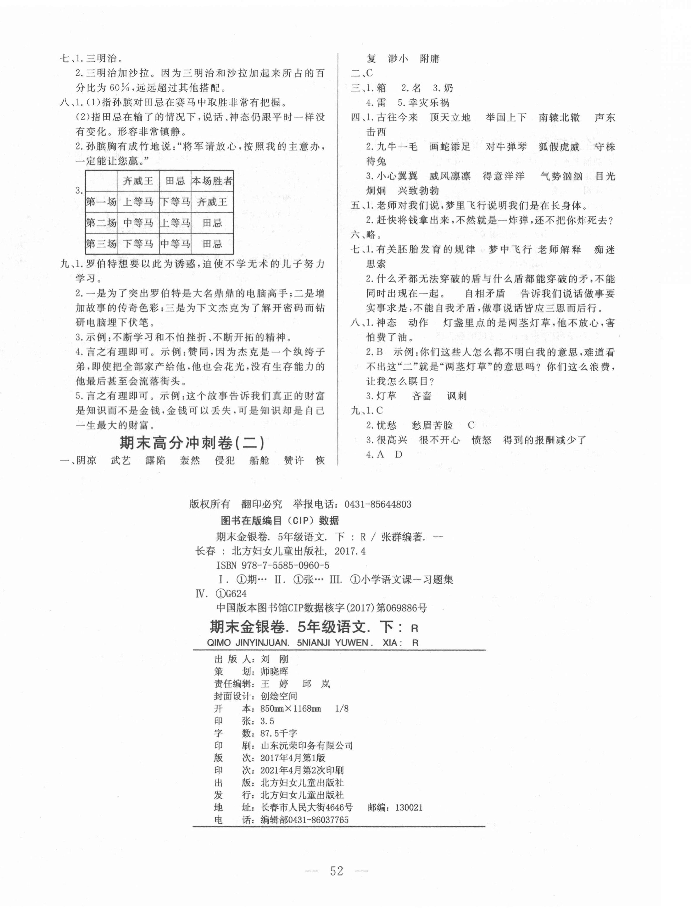 注:目前有些书本章节名称可能整理的还不是很完善,但都是按照顺序排列的,请同学们按照顺序仔细查找。练习册 2021年期末金银卷五年级语文下册人教版 答案主要是用来给同学们做完题方便对答案用的,请勿直接抄袭。