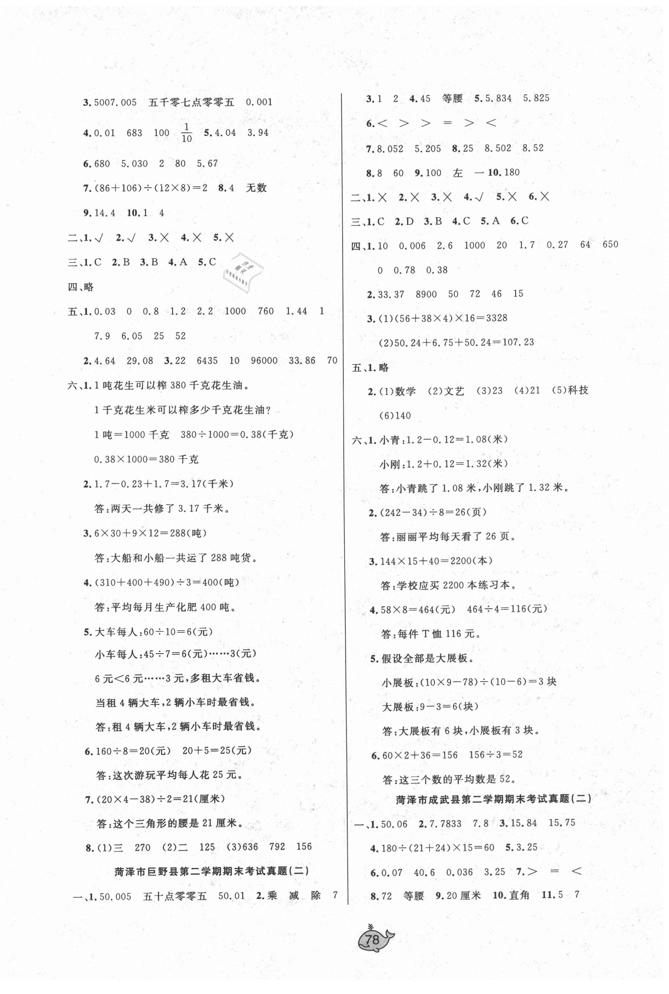 注:目前有些书本章节名称可能整理的还不是很完善,但都是按照顺序排列的,请同学们按照顺序仔细查找。练习册 2021年菏泽真题汇编四年级数学下册人教版 答案主要是用来给同学们做完题方便对答案用的,请勿直接抄袭。