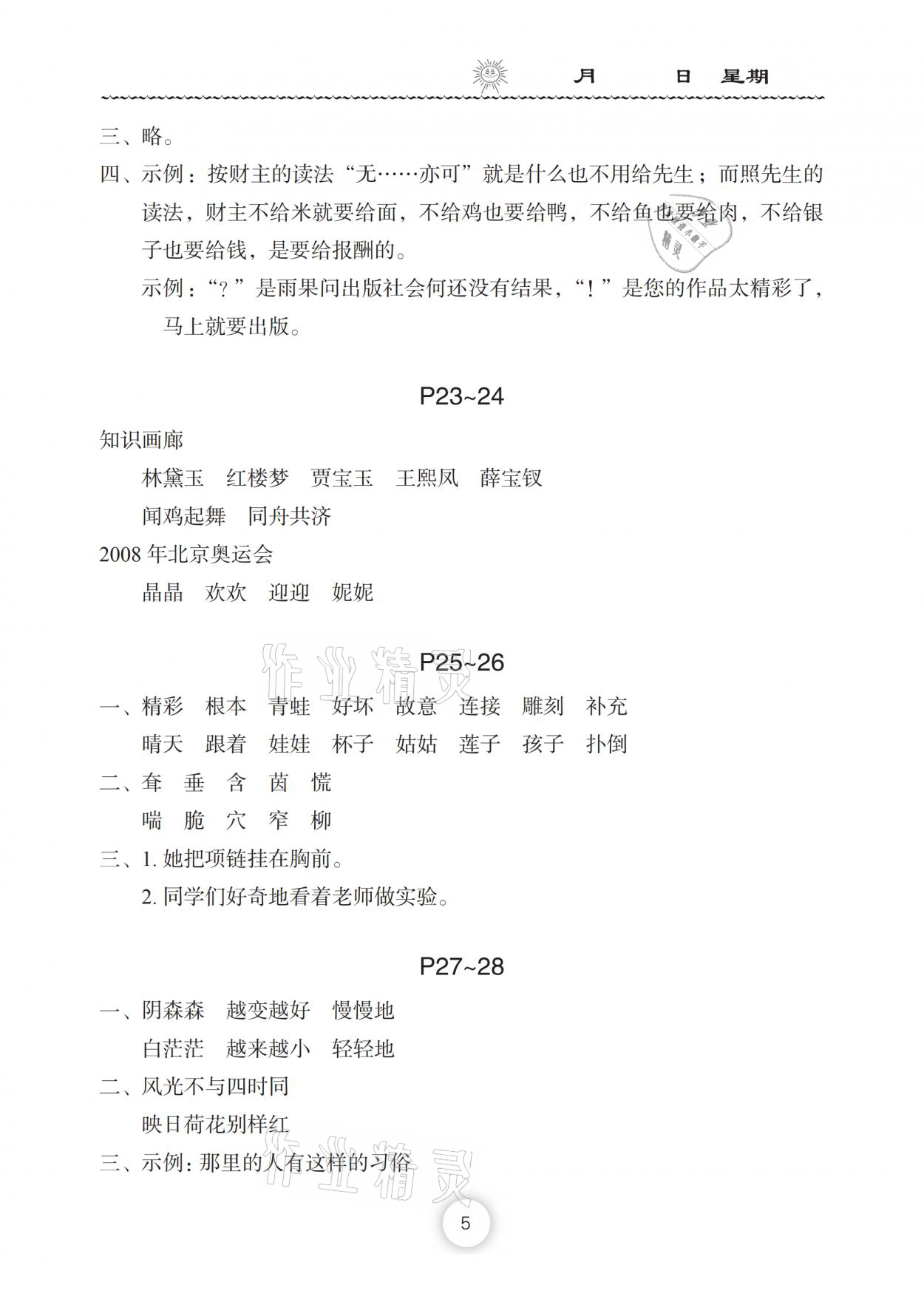 注:目前有些书本章节名称可能整理的还不是很完善,但都是按照顺序排列的,请同学们按照顺序仔细查找。练习册 2021年暑假作业二年级语文人教版长江少年儿童出版社 答案主要是用来给同学们做完题方便对答案用的,请勿直接抄袭。