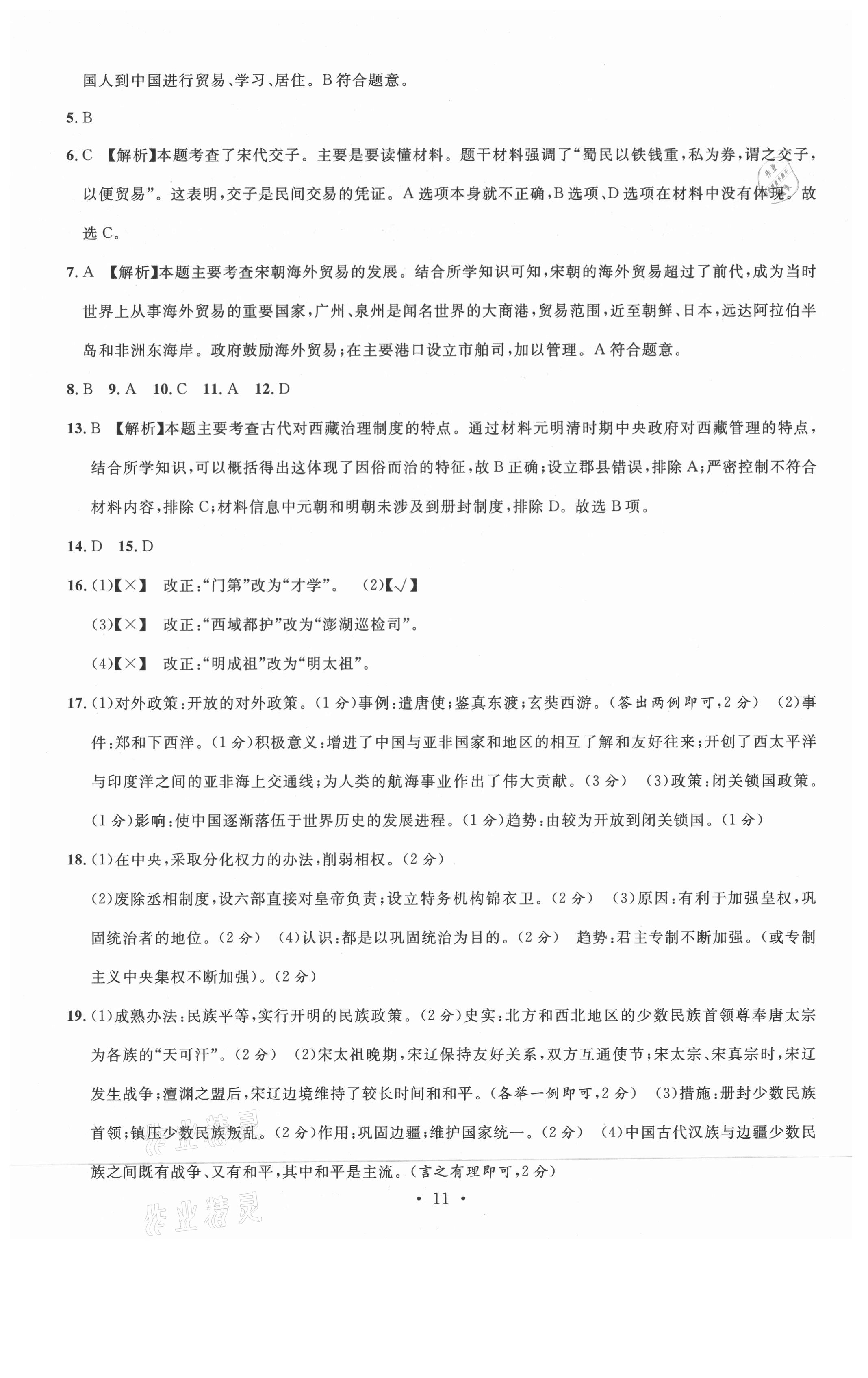 2021年名校课堂本地期末卷七年级历史下册人教版安徽专版
