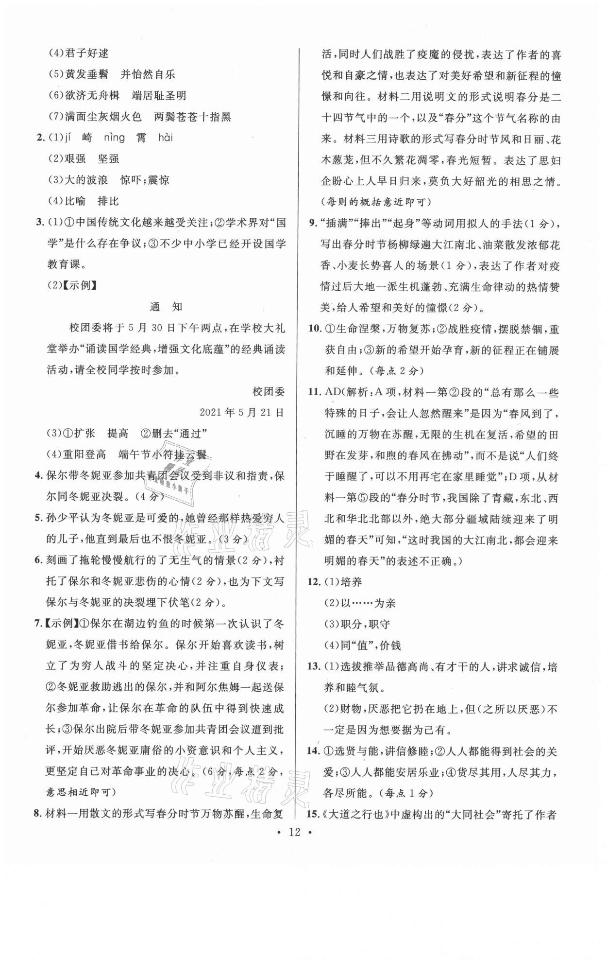 2021年名校课堂本地期末卷八年级语文下册人教版安徽专版
