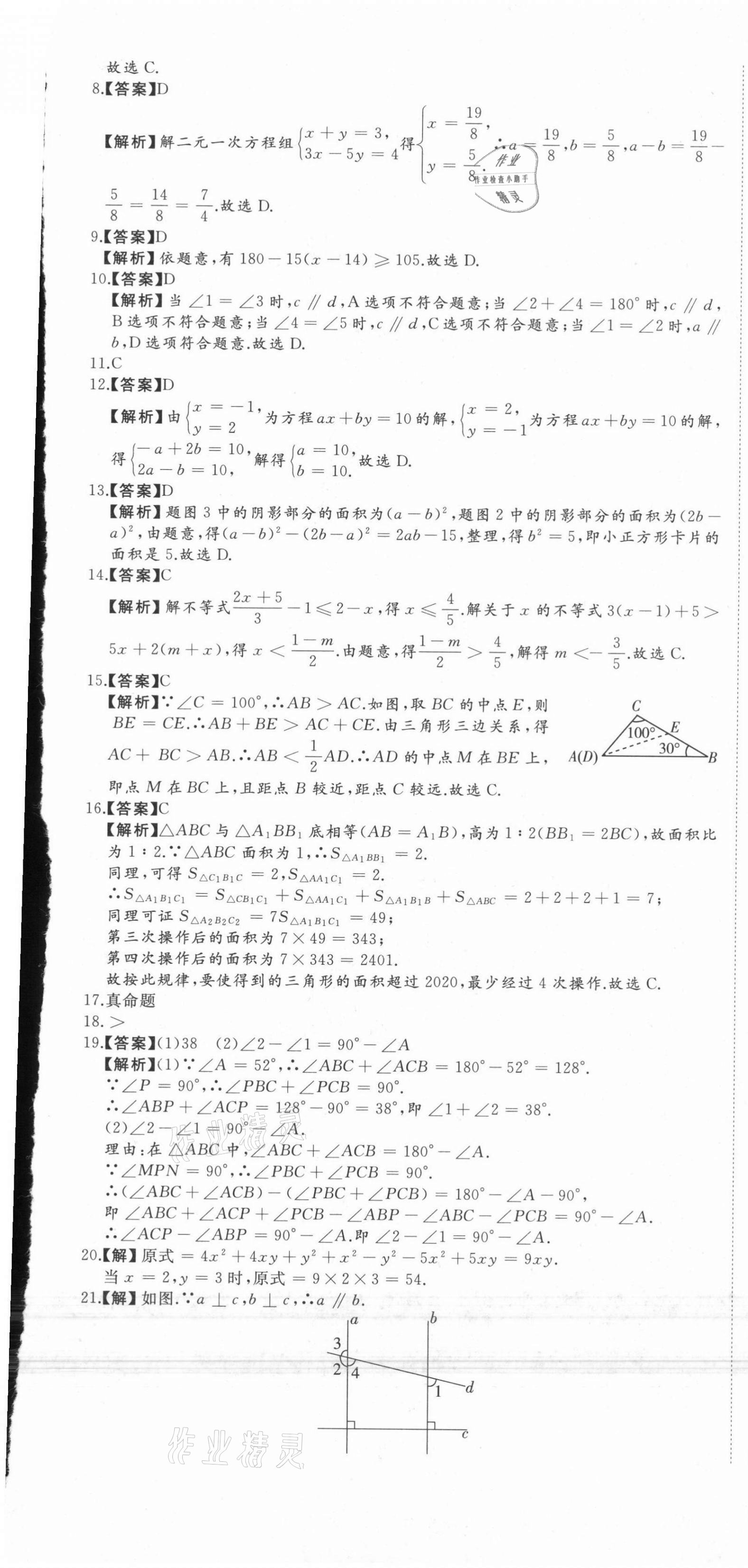 注:目前有些书本章节名称可能整理的还不是很完善,但都是按照顺序排列的,请同学们按照顺序仔细查找。练习册 2021年首席期末8套卷七年级数学下册冀教版 答案主要是用来给同学们做完题方便对答案用的,请勿直接抄袭。