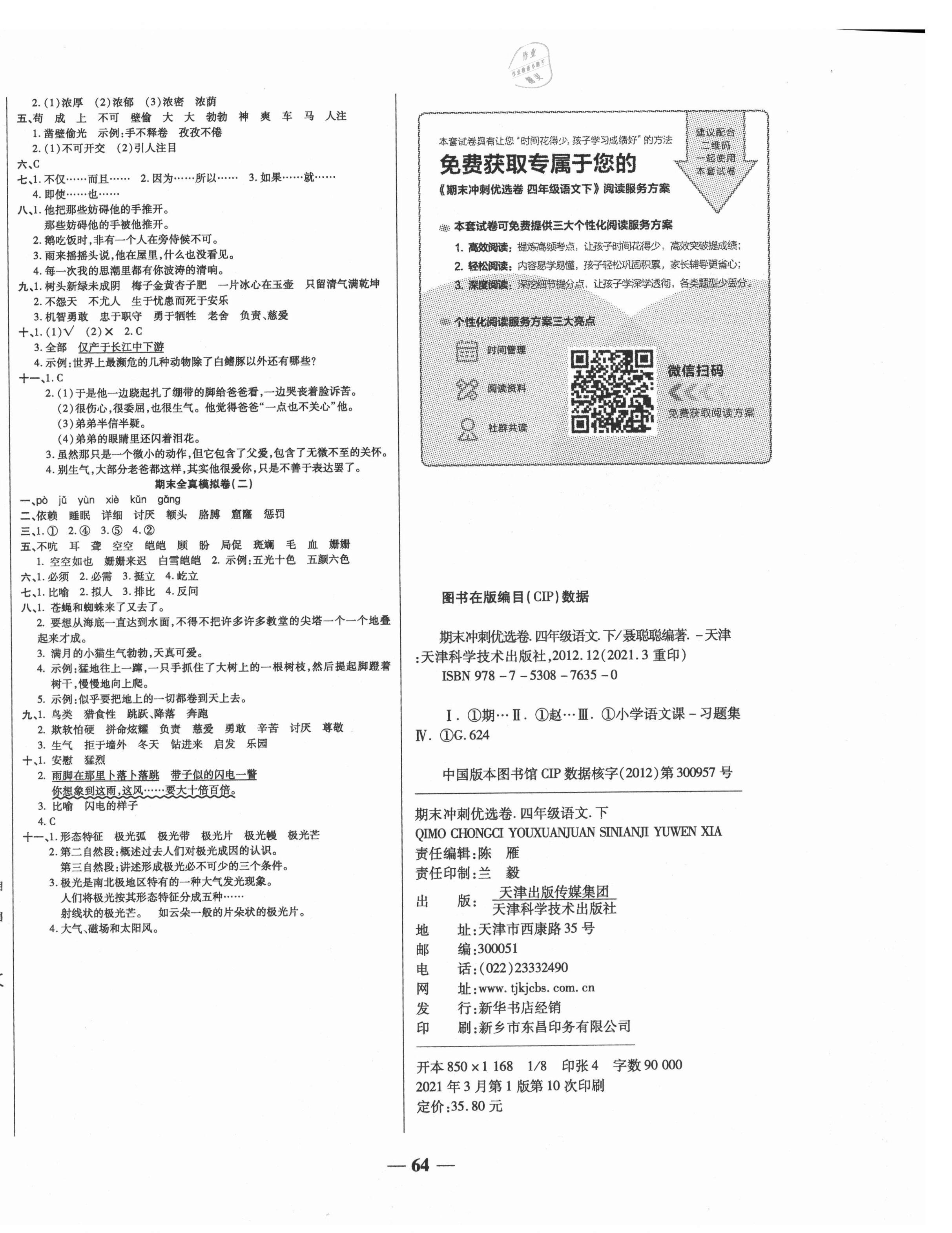 注:目前有些书本章节名称可能整理的还不是很完善,但都是按照顺序排列的,请同学们按照顺序仔细查找。练习册 2021年期末冲刺优选卷四年级语文下册人教版 答案主要是用来给同学们做完题方便对答案用的,请勿直接抄袭。