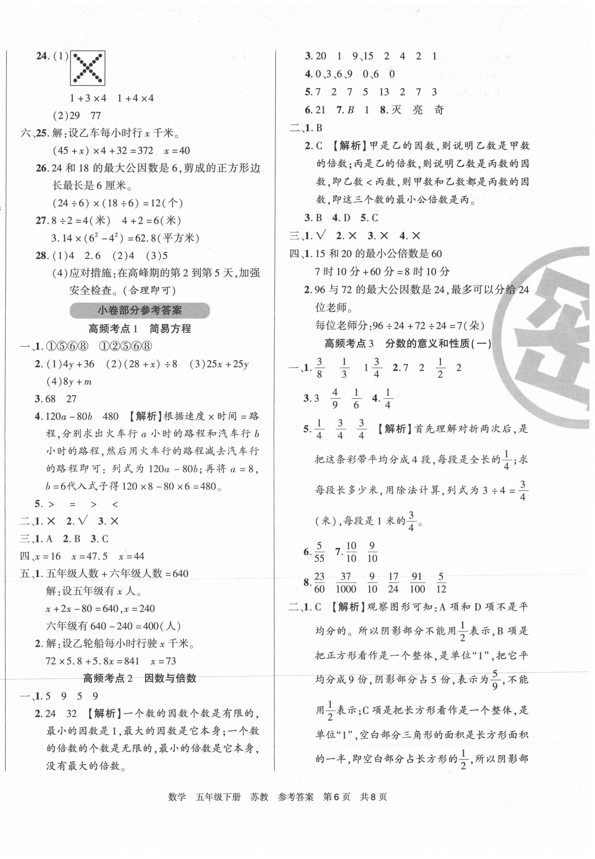 注:目前有些书本章节名称可能整理的还不是很完善,但都是按照顺序排列的,请同学们按照顺序仔细查找。练习册 2021年一卷成名期末真题精编优选五年级数学下册苏教版洛阳专版 答案主要是用来给同学们做完题方便对答案用的,请勿直接抄袭。