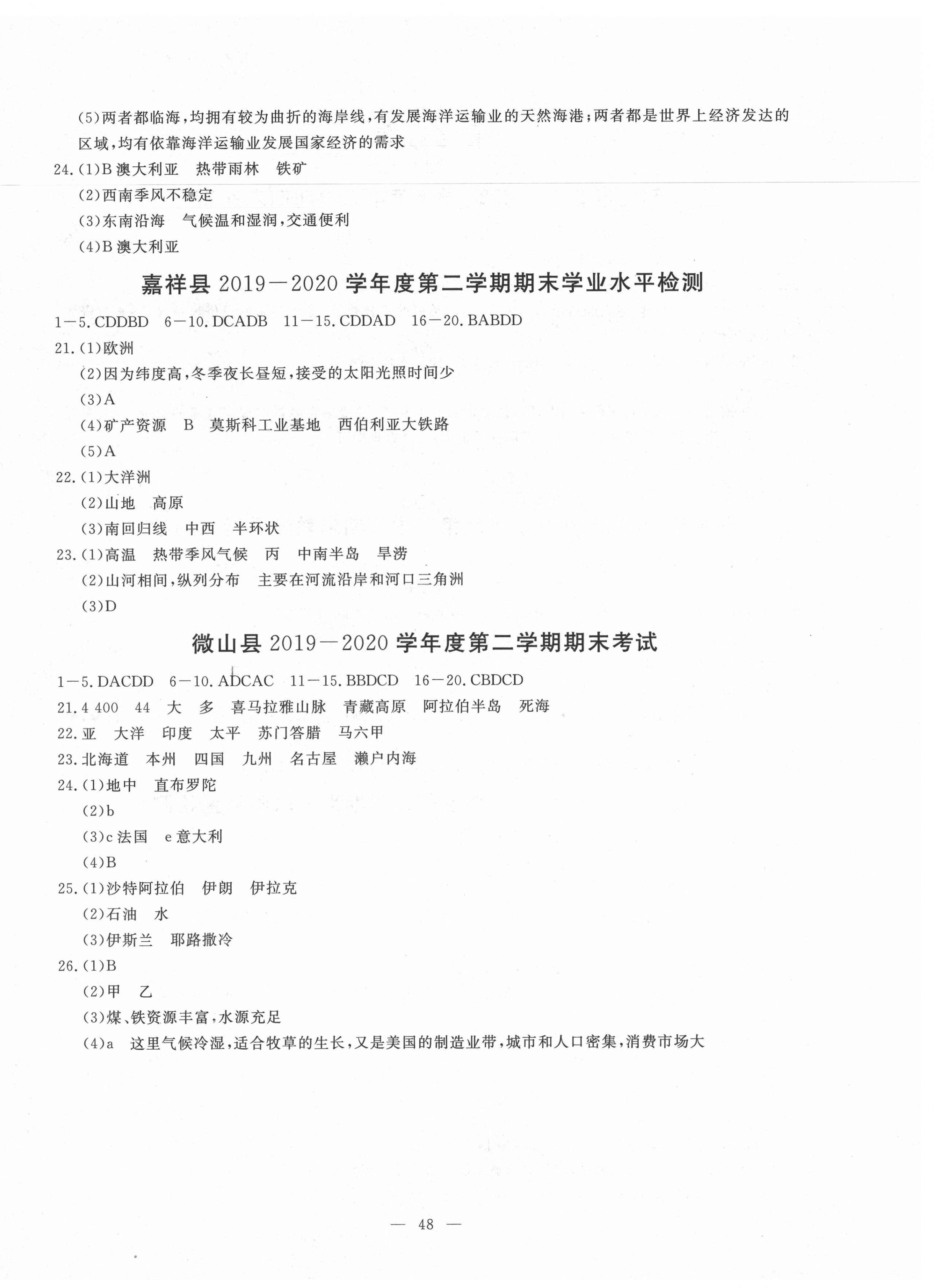 注:目前有些书本章节名称可能整理的还不是很完善,但都是按照顺序排列的,请同学们按照顺序仔细查找。练习册 2021年期末季济宁市各县市期末试题精选七年级地理下册人教版 答案主要是用来给同学们做完题方便对答案用的,请勿直接抄袭。