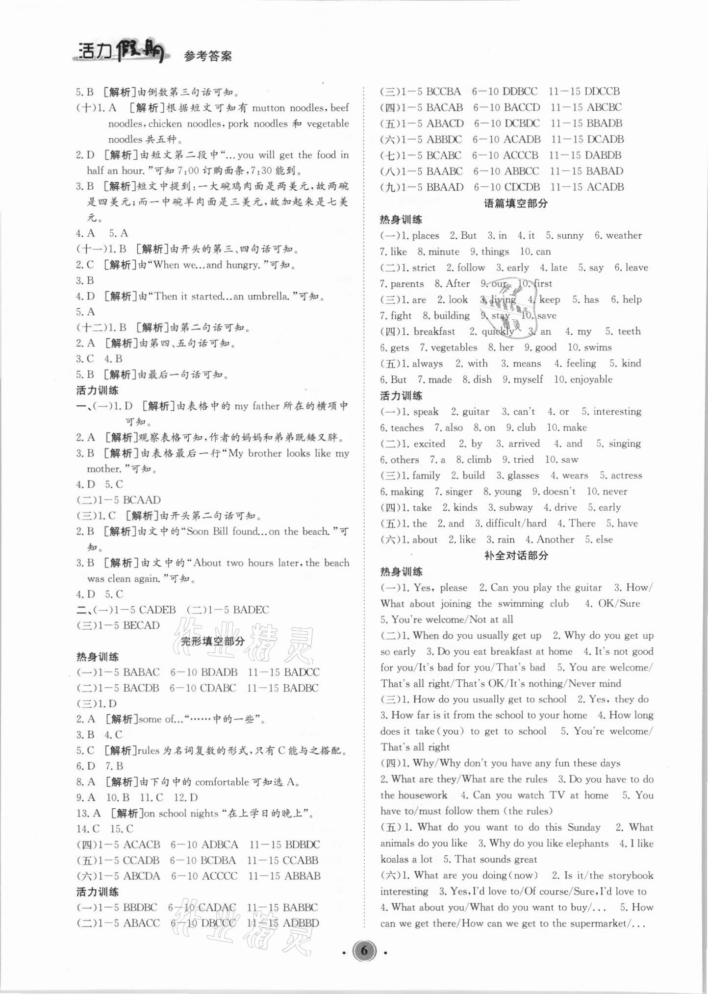 注:目前有些书本章节名称可能整理的还不是很完善,但都是按照顺序排列的,请同学们按照顺序仔细查找。练习册 2021年活力假期七年级英语人教版 答案主要是用来给同学们做完题方便对答案用的,请勿直接抄袭。