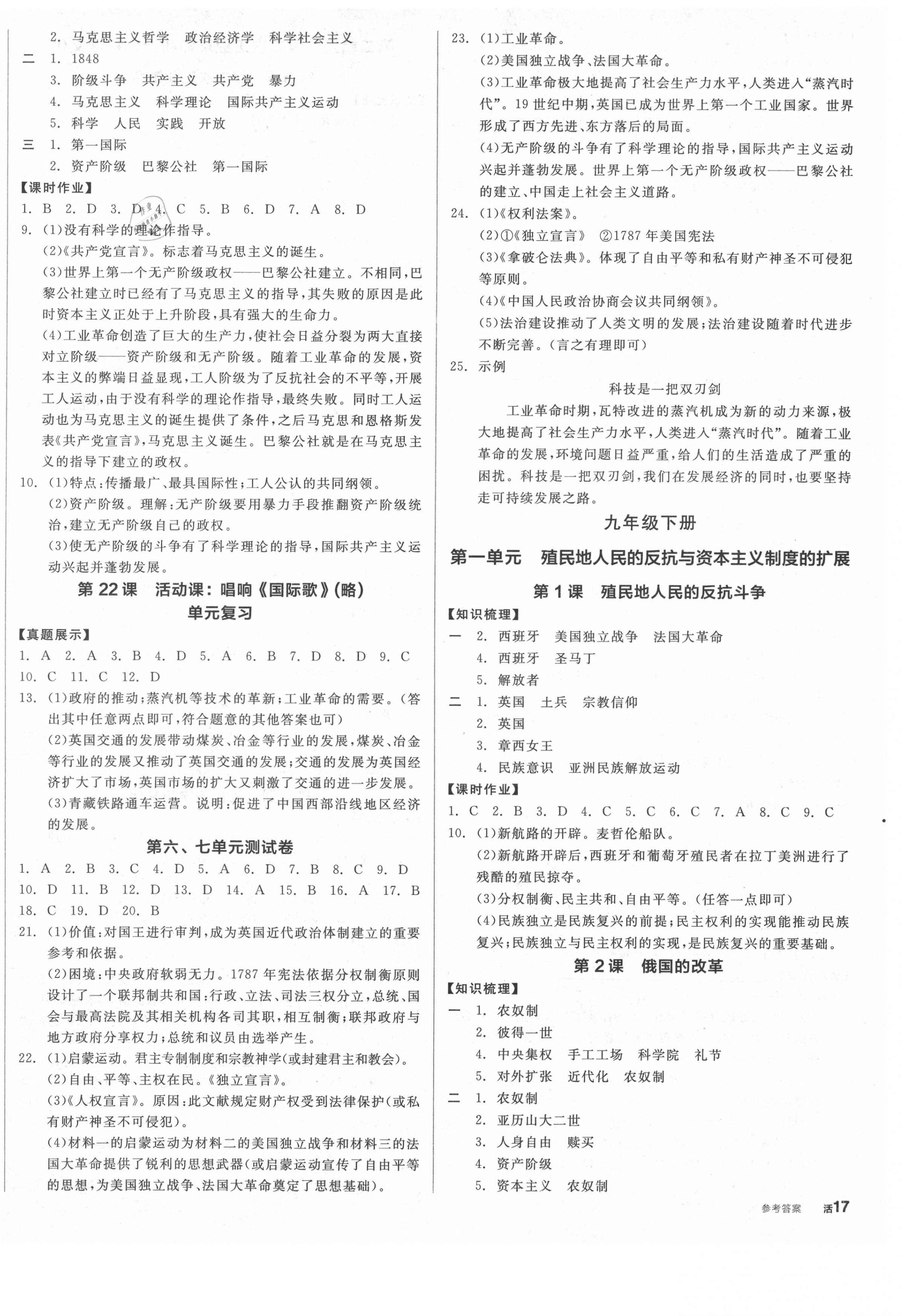 2021年全品学练考九年级历史上册人教版河南专版