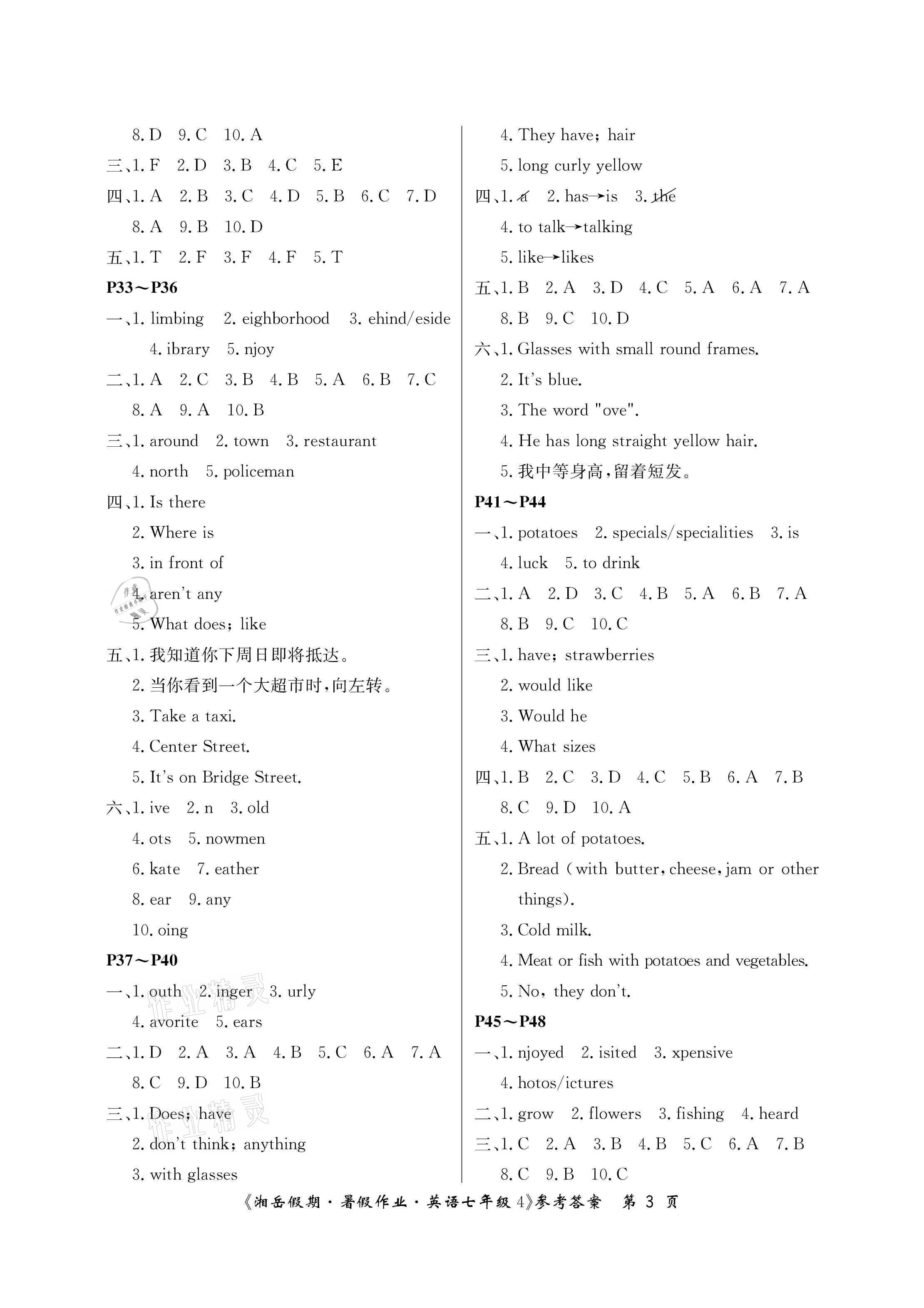 注:目前有些书本章节名称可能整理的还不是很完善,但都是按照顺序排列的,请同学们按照顺序仔细查找。练习册 2021年湘岳假期暑假作业七年级英语人教版 答案主要是用来给同学们做完题方便对答案用的,请勿直接抄袭。