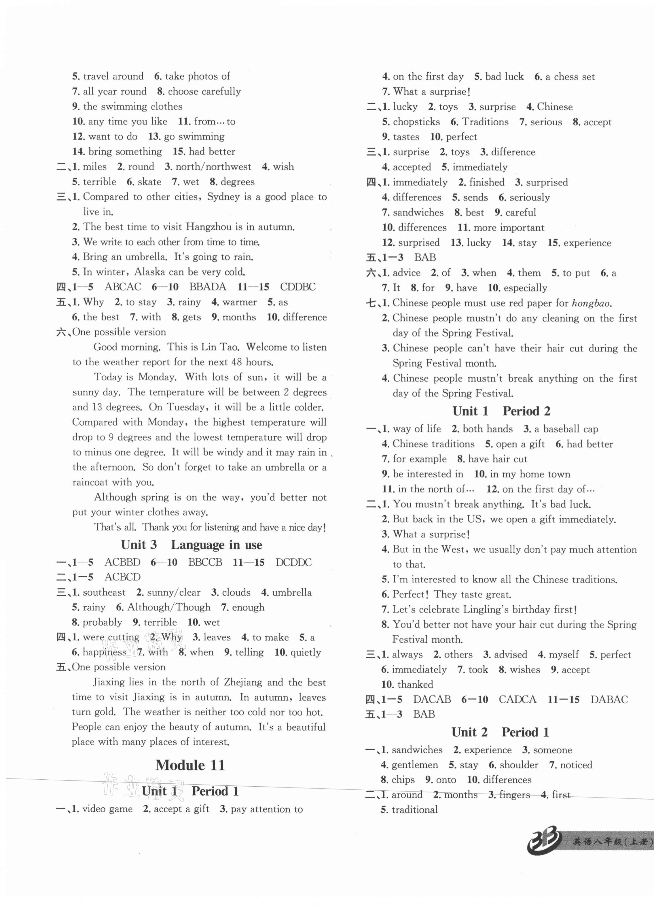 注:目前有些书本章节名称可能整理的还不是很完善,但都是按照顺序排列的,请同学们按照顺序仔细查找。练习册 2021年名师金典BFB初中课时优化八年级英语上册外研版 答案主要是用来给同学们做完题方便对答案用的,请勿直接抄袭。