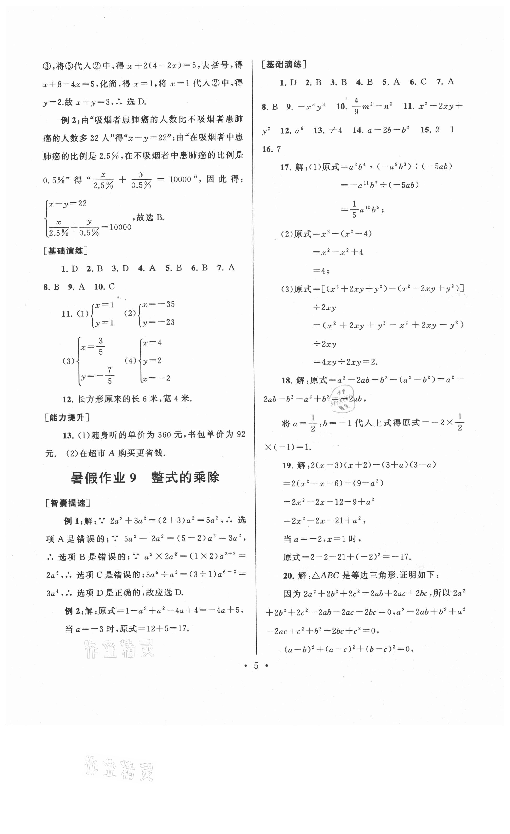 2021年暑假作业七年级数学浙教版安徽人民出版社