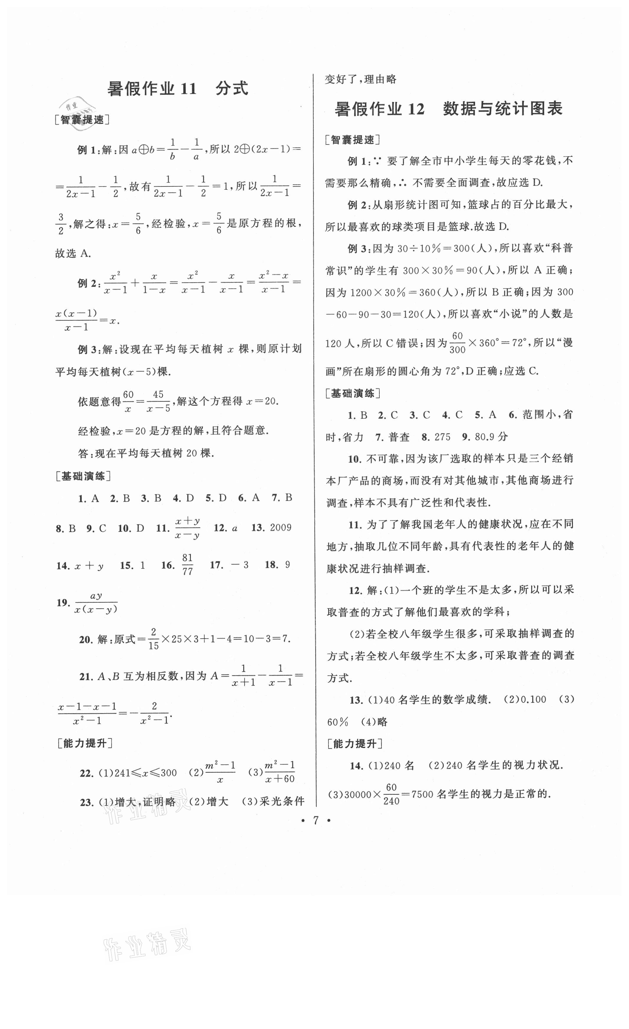 2021年暑假作业七年级数学浙教版安徽人民出版社