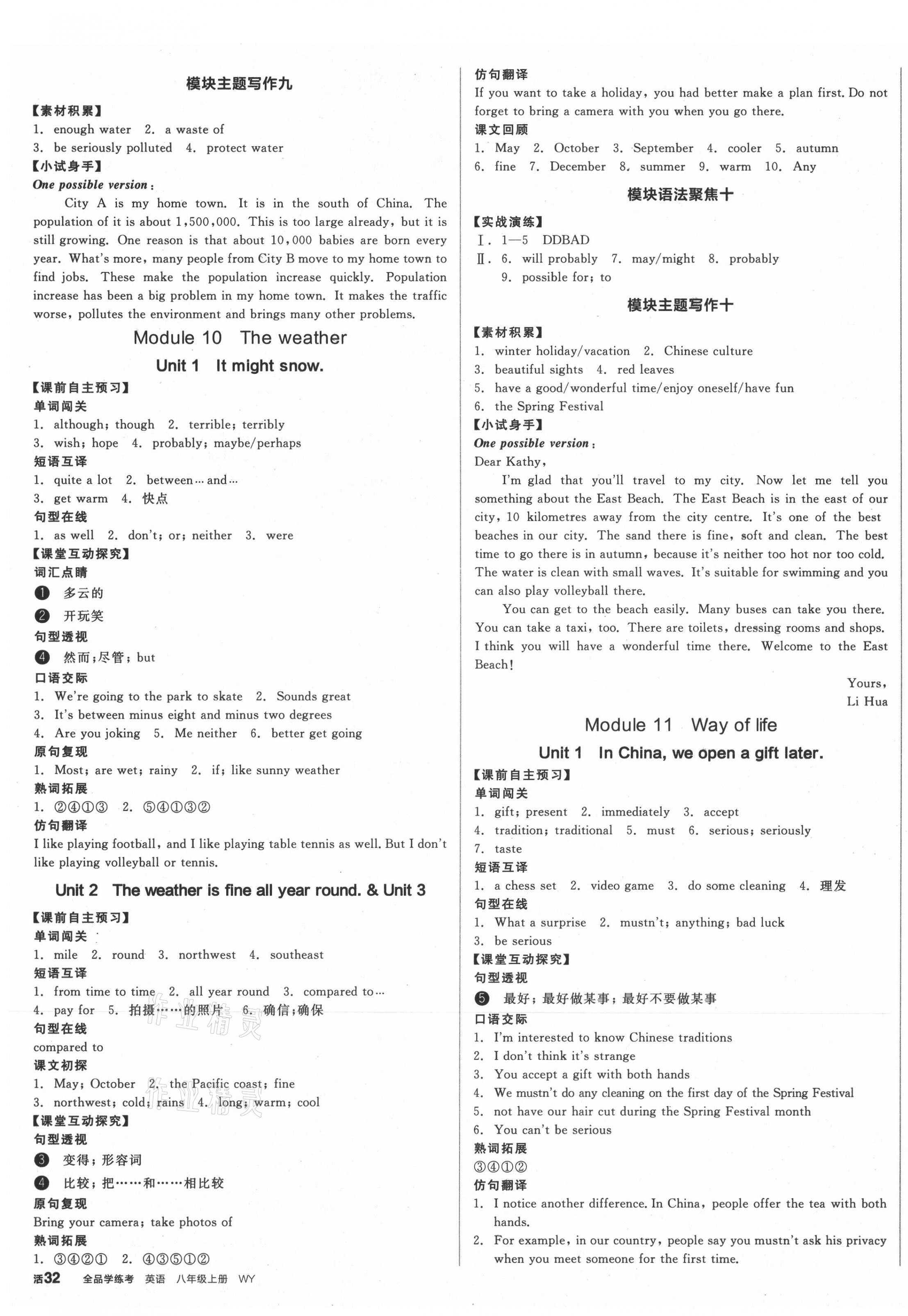 2021年全品学练考八年级英语上册外研版内蒙古专版