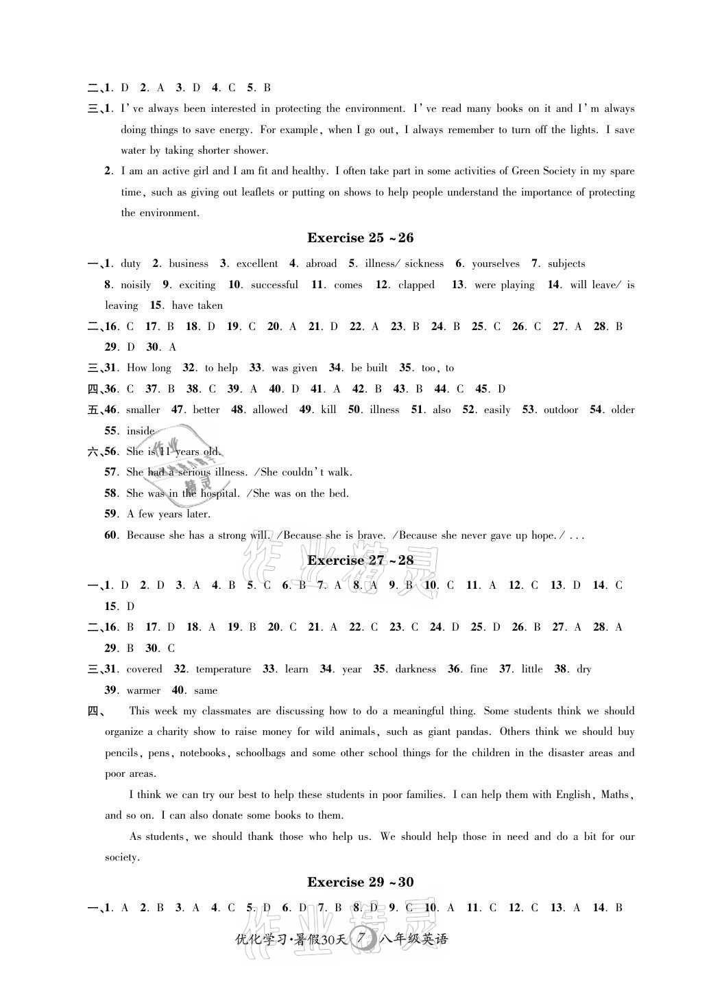 注:目前有些书本章节名称可能整理的还不是很完善,但都是按照顺序排列的,请同学们按照顺序仔细查找。练习册 2021年优化学习暑假30天河海大学出版社八年级英语全一册译林版 答案主要是用来给同学们做完题方便对答案用的,请勿直接抄袭。