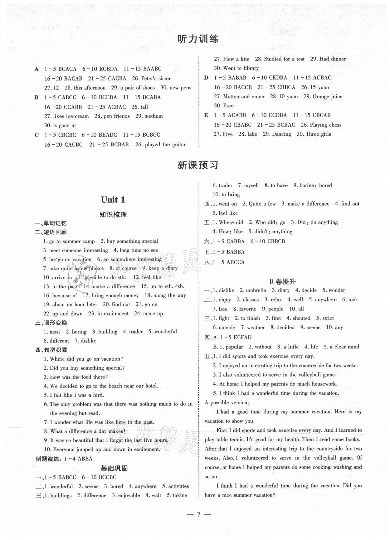 注:目前有些书本章节名称可能整理的还不是很完善,但都是按照顺序排列的,请同学们按照顺序仔细查找。练习册 2021年假期生活指导七年级英语暑假 答案主要是用来给同学们做完题方便对答案用的,请勿直接抄袭。