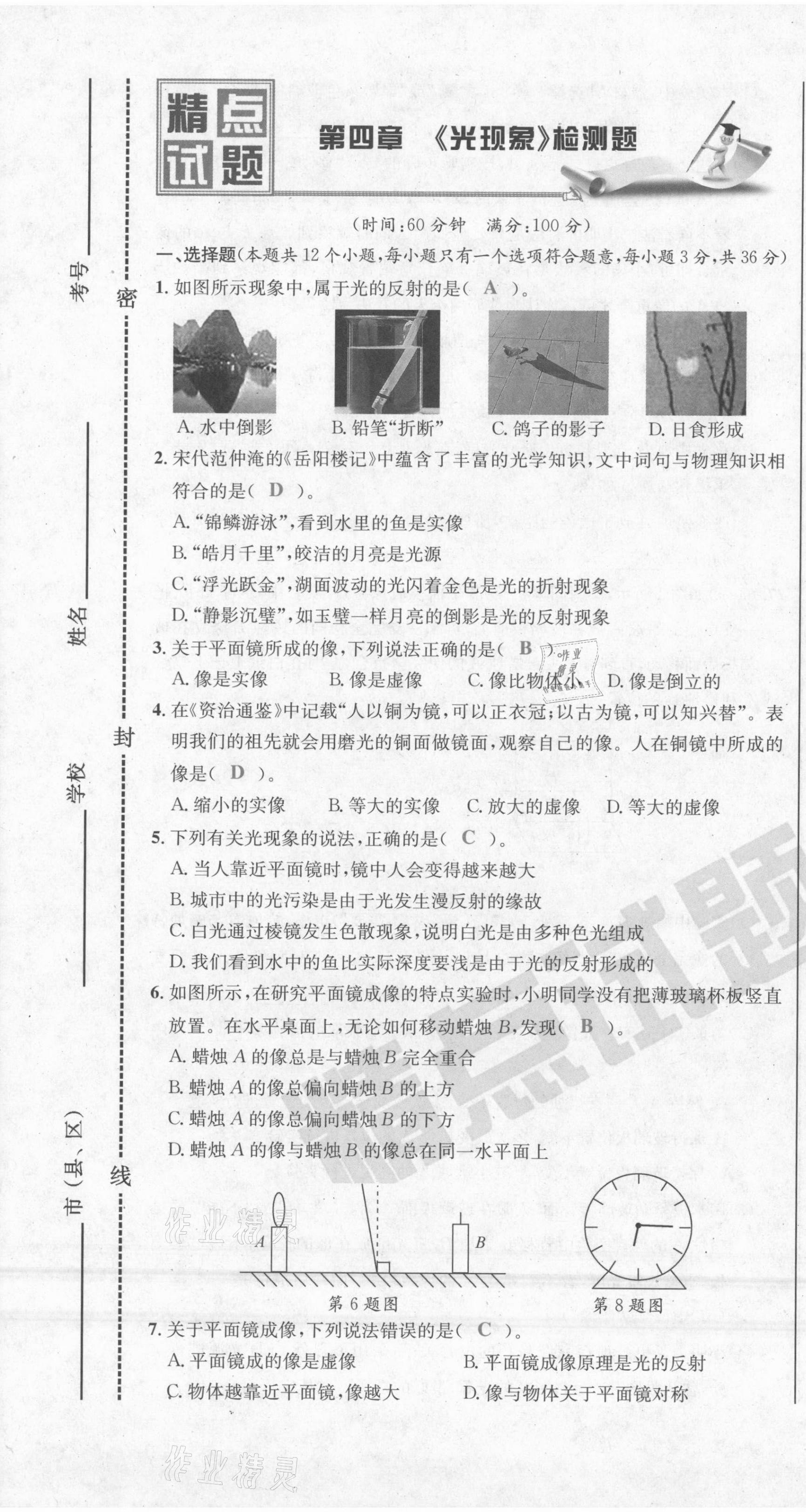 注:目前有些书本章节名称可能整理的还不是很完善,但都是按照顺序排列的,请同学们按照顺序仔细查找。练习册 2021年百所名校精点试题八年级物理上册人教版 答案主要是用来给同学们做完题方便对答案用的,请勿直接抄袭。