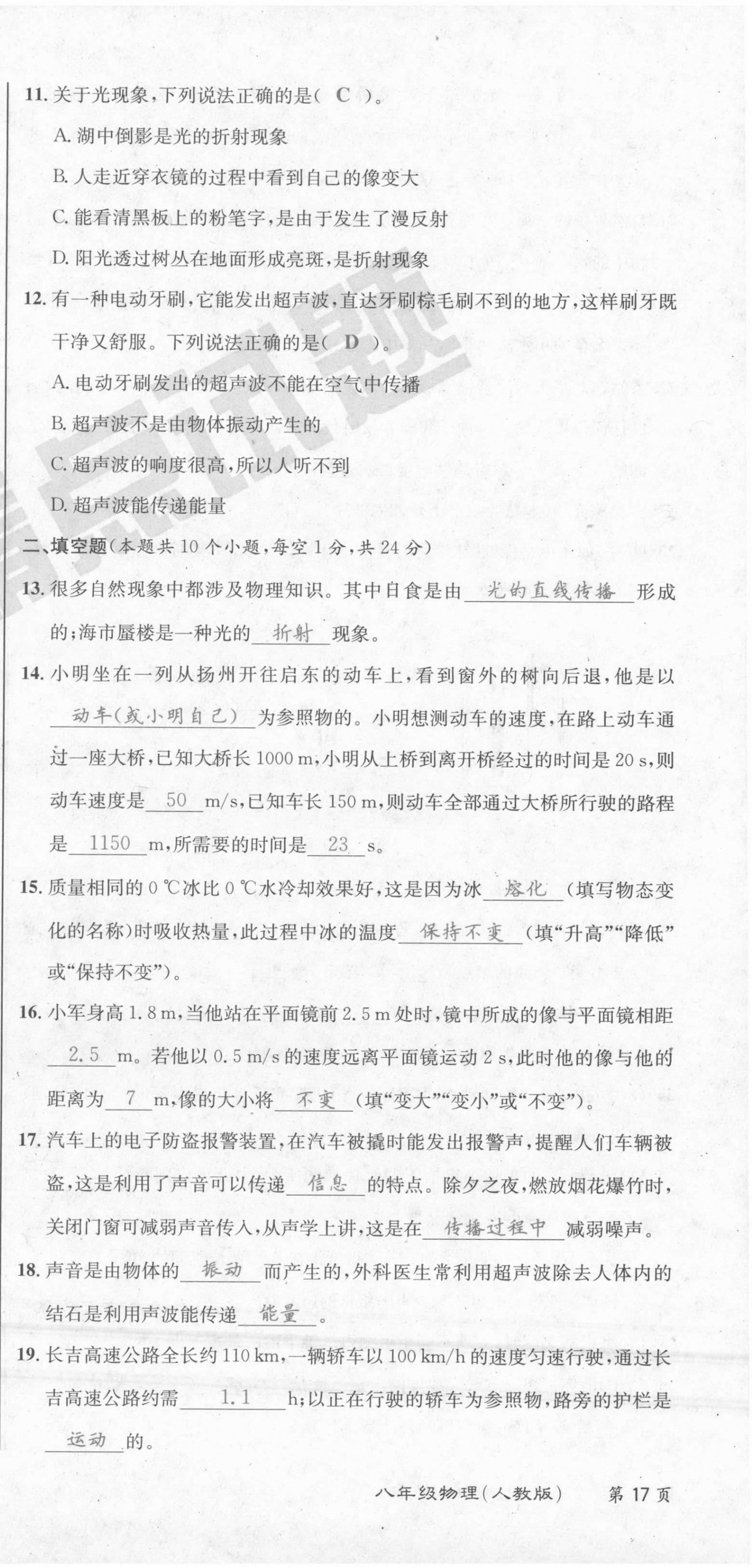 注:目前有些书本章节名称可能整理的还不是很完善,但都是按照顺序排列的,请同学们按照顺序仔细查找。练习册 2021年百所名校精点试题八年级物理上册人教版 答案主要是用来给同学们做完题方便对答案用的,请勿直接抄袭。