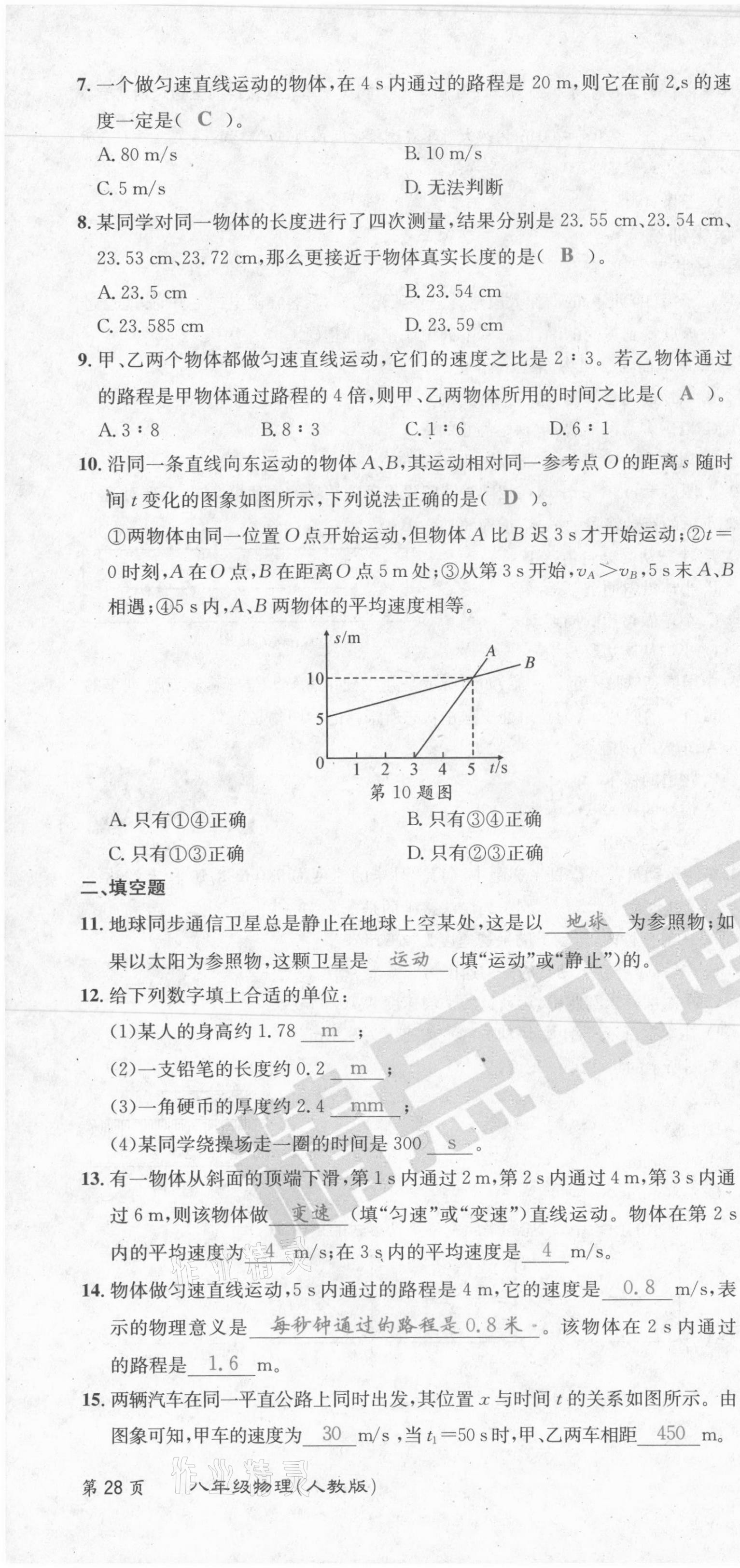 注:目前有些书本章节名称可能整理的还不是很完善,但都是按照顺序排列的,请同学们按照顺序仔细查找。练习册 2021年百所名校精点试题八年级物理上册人教版 答案主要是用来给同学们做完题方便对答案用的,请勿直接抄袭。