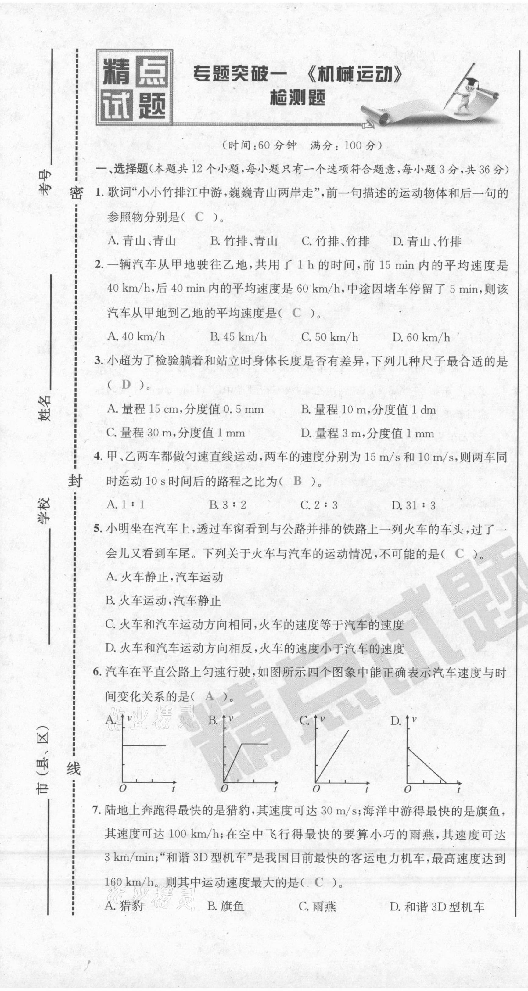 注:目前有些书本章节名称可能整理的还不是很完善,但都是按照顺序排列的,请同学们按照顺序仔细查找。练习册 2021年百所名校精点试题八年级物理上册人教版 答案主要是用来给同学们做完题方便对答案用的,请勿直接抄袭。