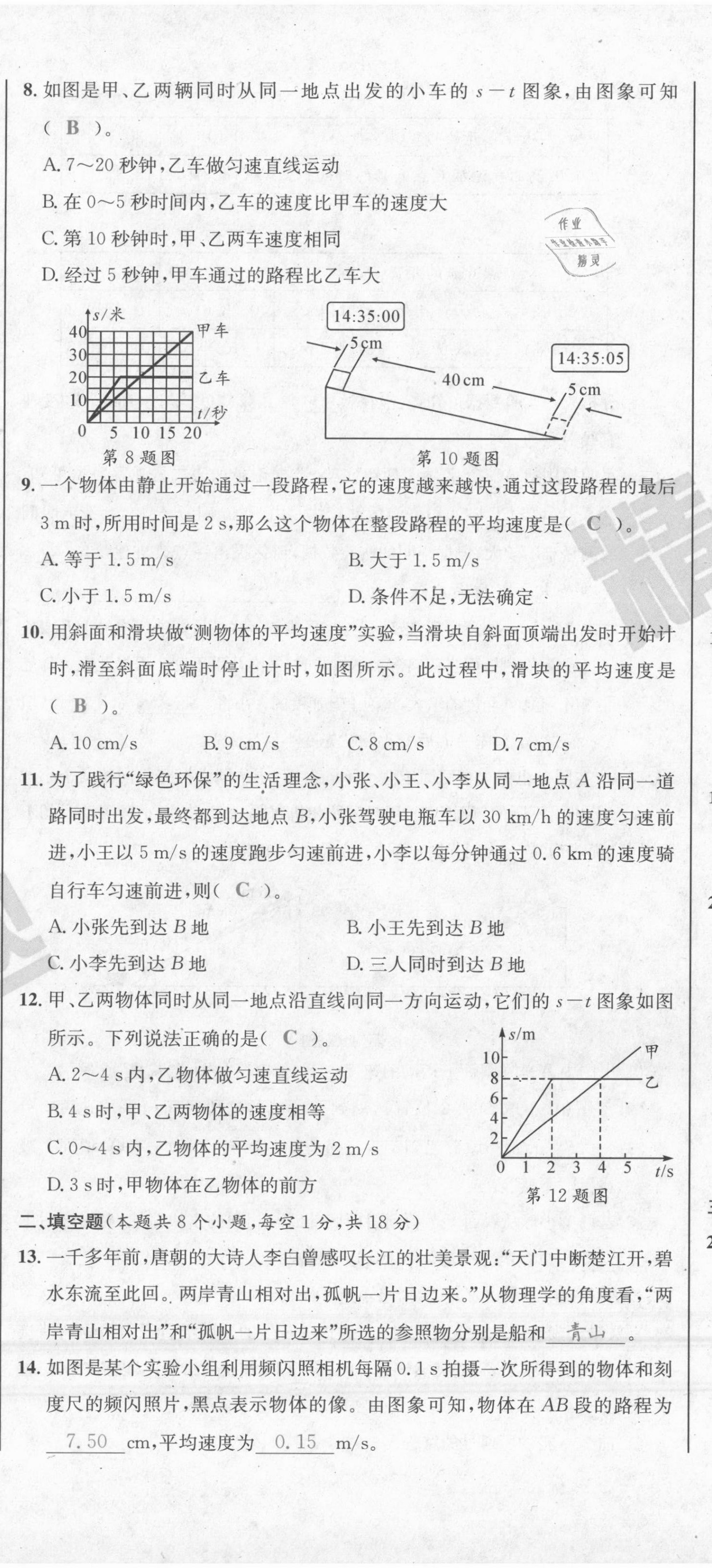 注:目前有些书本章节名称可能整理的还不是很完善,但都是按照顺序排列的,请同学们按照顺序仔细查找。练习册 2021年百所名校精点试题八年级物理上册人教版 答案主要是用来给同学们做完题方便对答案用的,请勿直接抄袭。