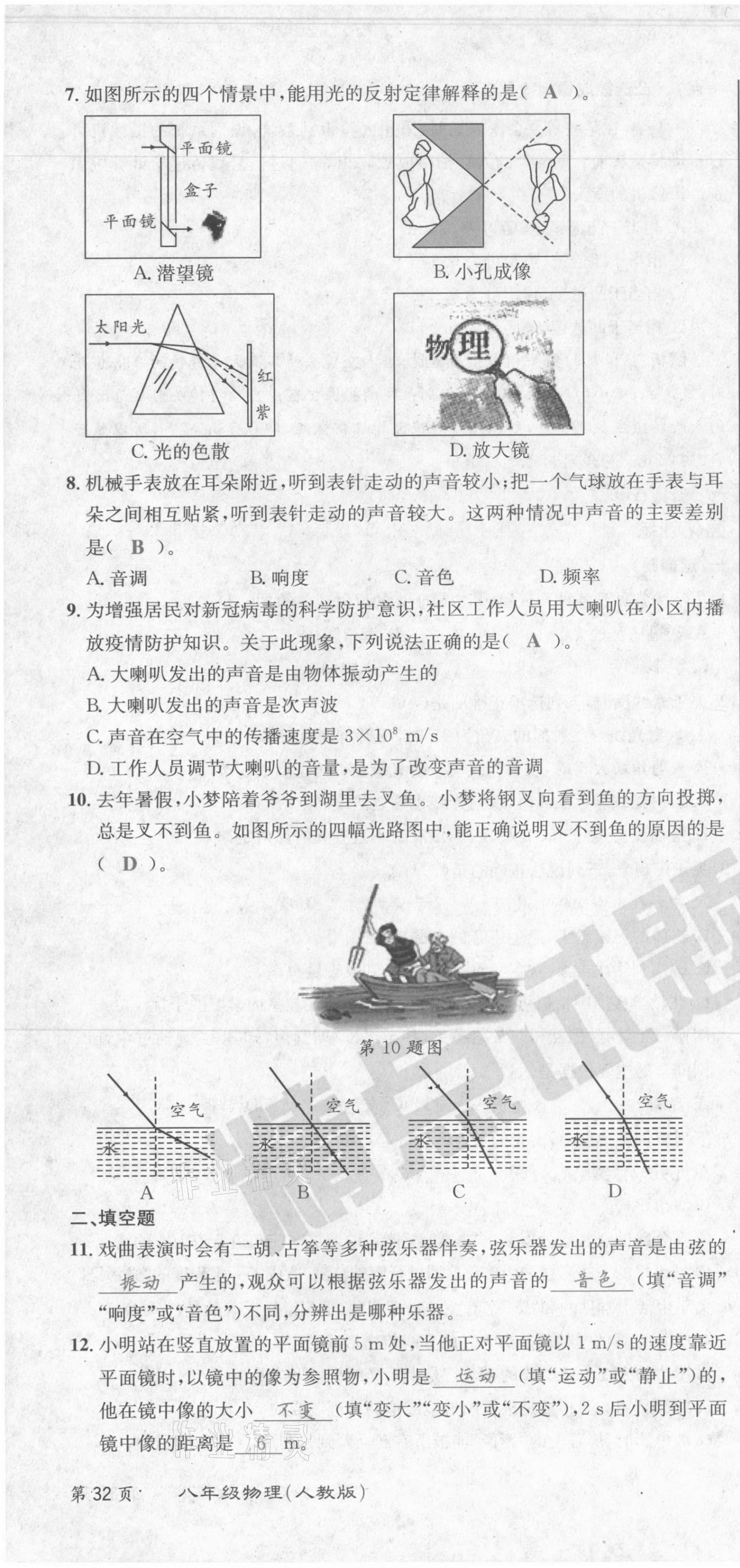 注:目前有些书本章节名称可能整理的还不是很完善,但都是按照顺序排列的,请同学们按照顺序仔细查找。练习册 2021年百所名校精点试题八年级物理上册人教版 答案主要是用来给同学们做完题方便对答案用的,请勿直接抄袭。