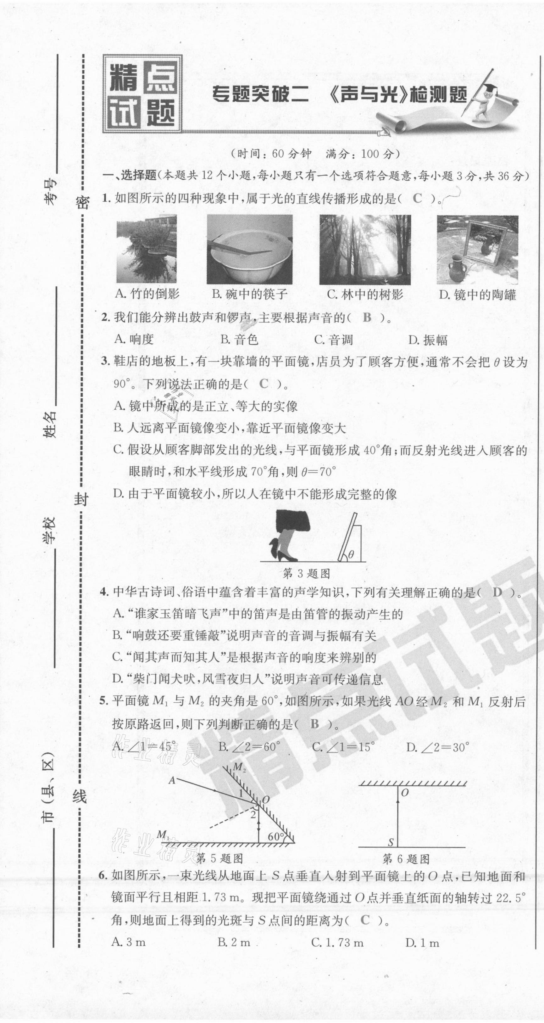 注:目前有些书本章节名称可能整理的还不是很完善,但都是按照顺序排列的,请同学们按照顺序仔细查找。练习册 2021年百所名校精点试题八年级物理上册人教版 答案主要是用来给同学们做完题方便对答案用的,请勿直接抄袭。