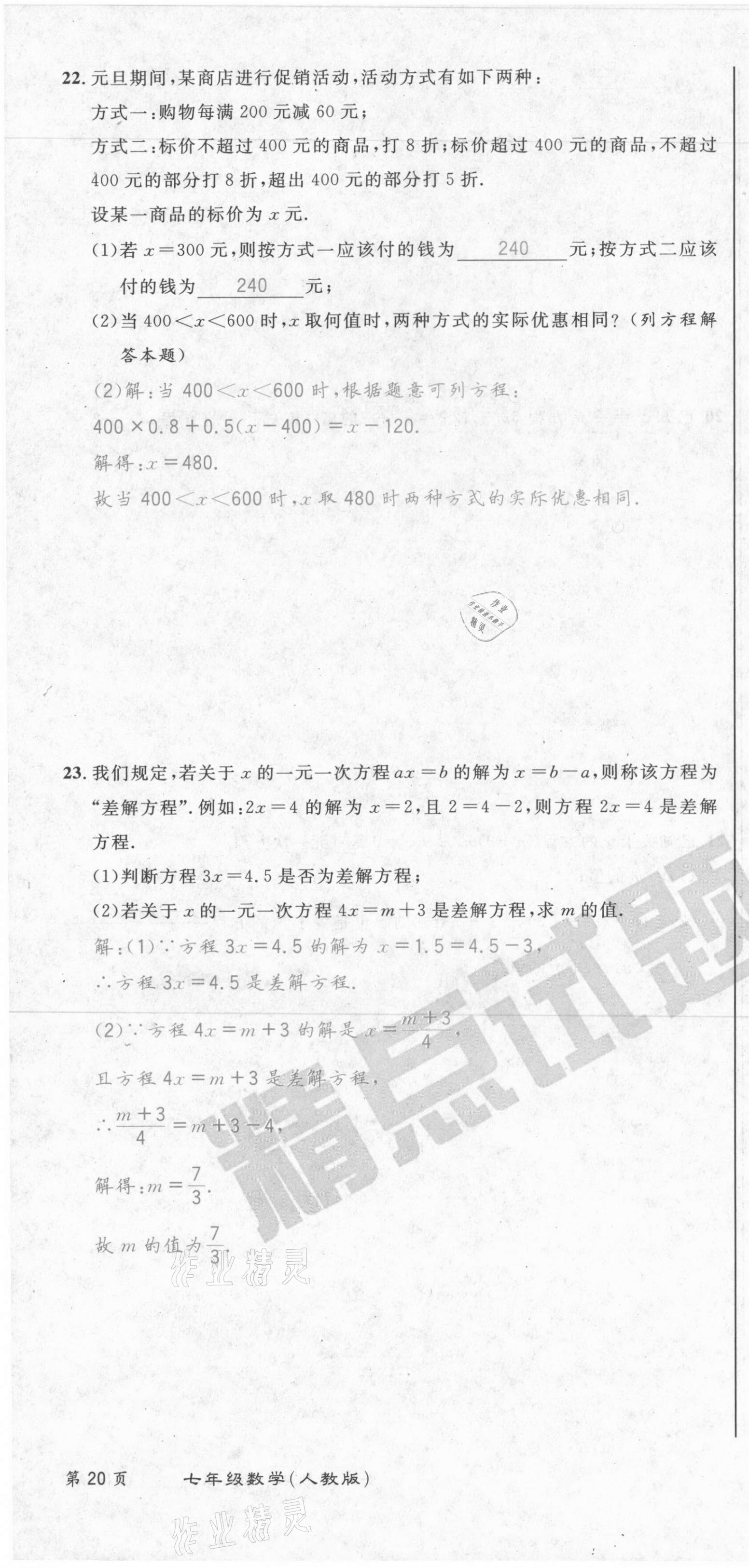 注:目前有些书本章节名称可能整理的还不是很完善,但都是按照顺序排列的,请同学们按照顺序仔细查找。练习册 2021年百所名校精点试题七年级数学上册人教版 答案主要是用来给同学们做完题方便对答案用的,请勿直接抄袭。