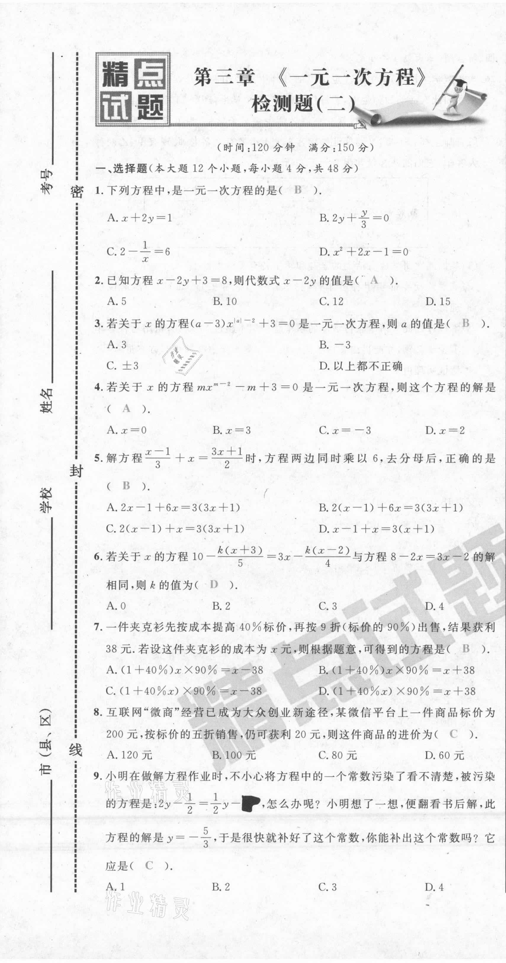 注:目前有些书本章节名称可能整理的还不是很完善,但都是按照顺序排列的,请同学们按照顺序仔细查找。练习册 2021年百所名校精点试题七年级数学上册人教版 答案主要是用来给同学们做完题方便对答案用的,请勿直接抄袭。