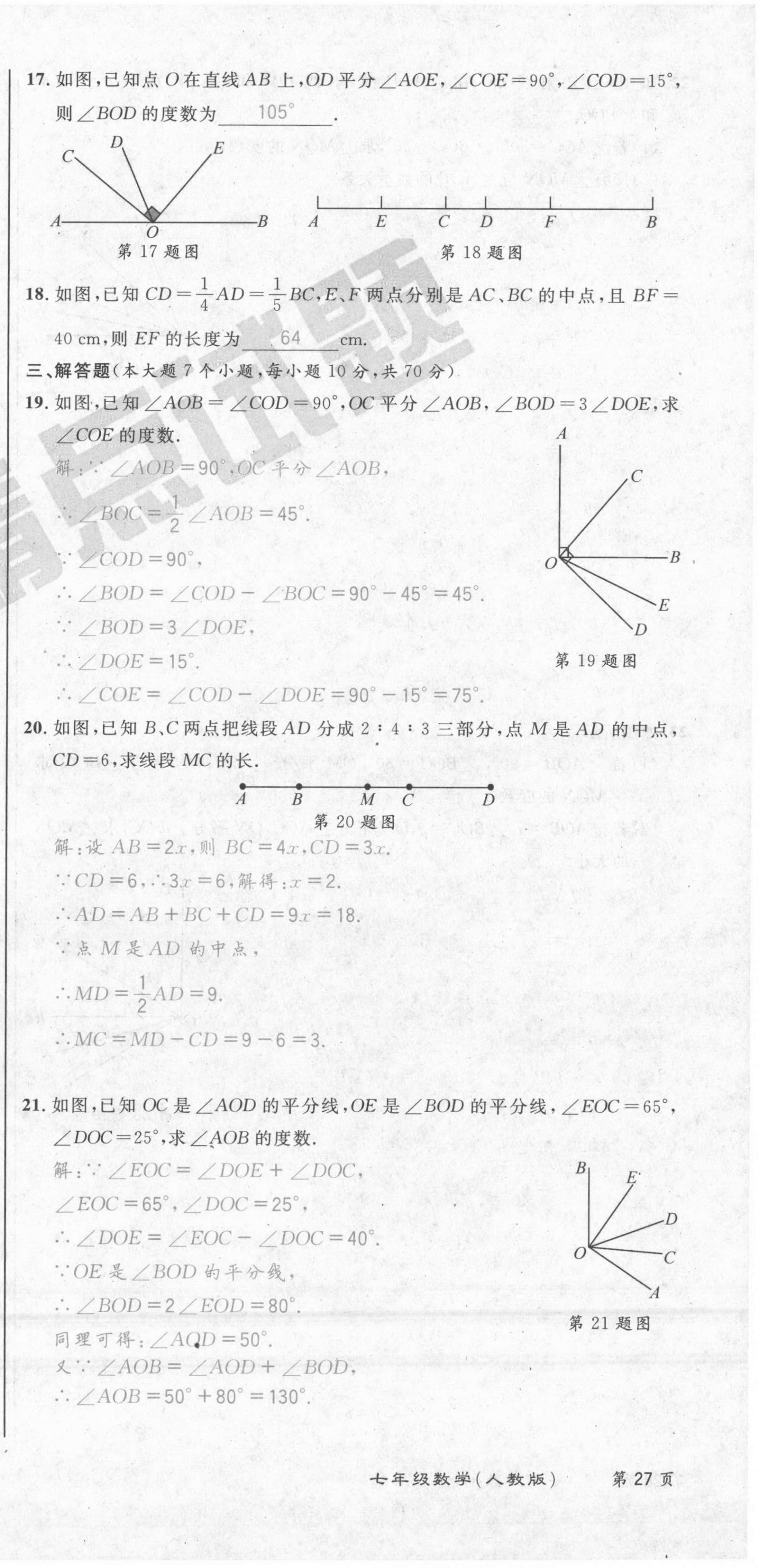 注:目前有些书本章节名称可能整理的还不是很完善,但都是按照顺序排列的,请同学们按照顺序仔细查找。练习册 2021年百所名校精点试题七年级数学上册人教版 答案主要是用来给同学们做完题方便对答案用的,请勿直接抄袭。